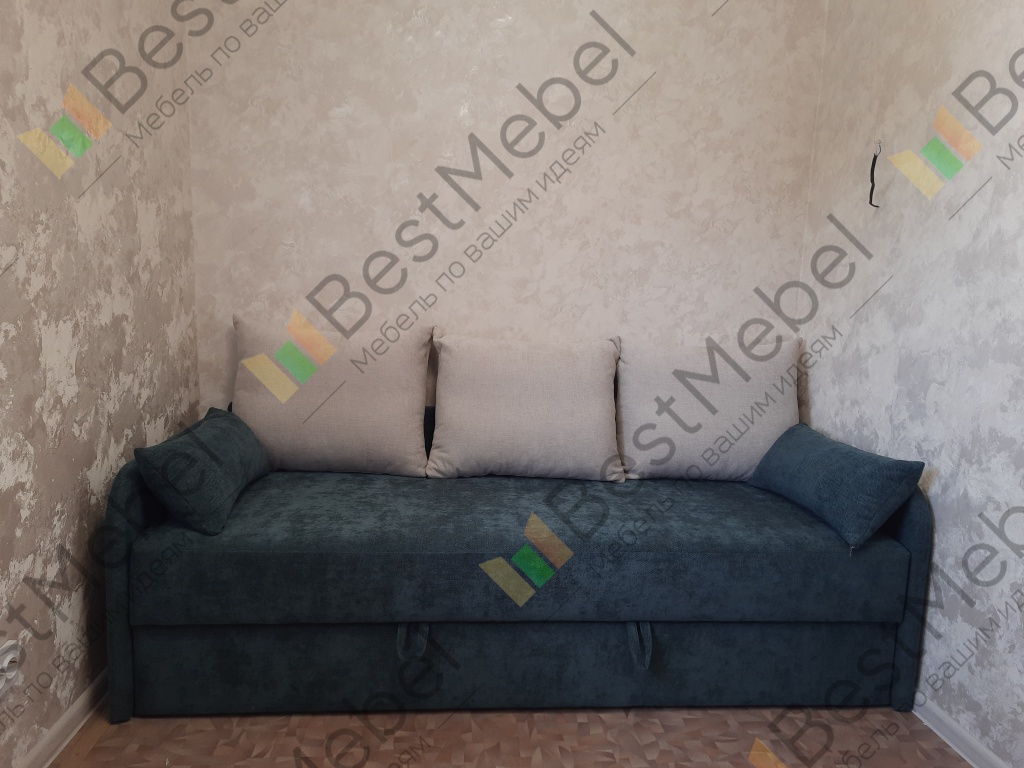 Заказ00000854578. Прекрасная тахта, всё сделано качественно. Чехлы на подушках на молнии, можно стирать. Очень удобно, что заказать можно свои размеры. Большой ящик для белья.