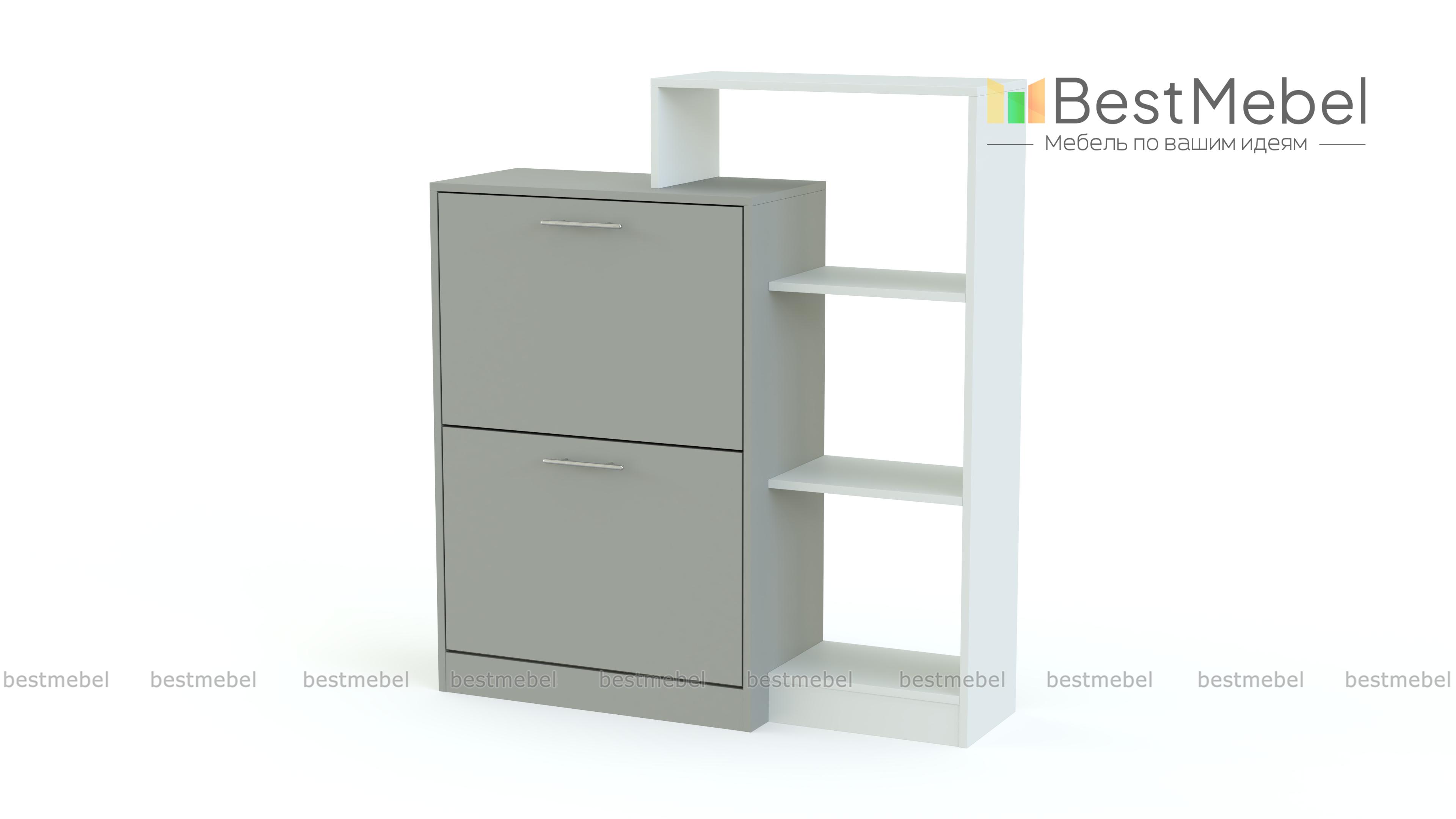 Обувница Лаф 4 BMS – практичная система хранения и оригинальный интерьерный акцент. Комбинированная модель объединила тумбу с двумя откидными обувными лотками и мини-стеллаж с открытыми полками, на которых будут всегда под рукой принадлежности по уходу, аксессуары и разнообразные бытовые мелочи. Визуальную легкость разноуровневой конструкции придает контрастное цветовое решение. Купить обувницу Лаф 4 BMS и обустроить стильную и комфортную входную зону вам поможет наш интернет-магазин.