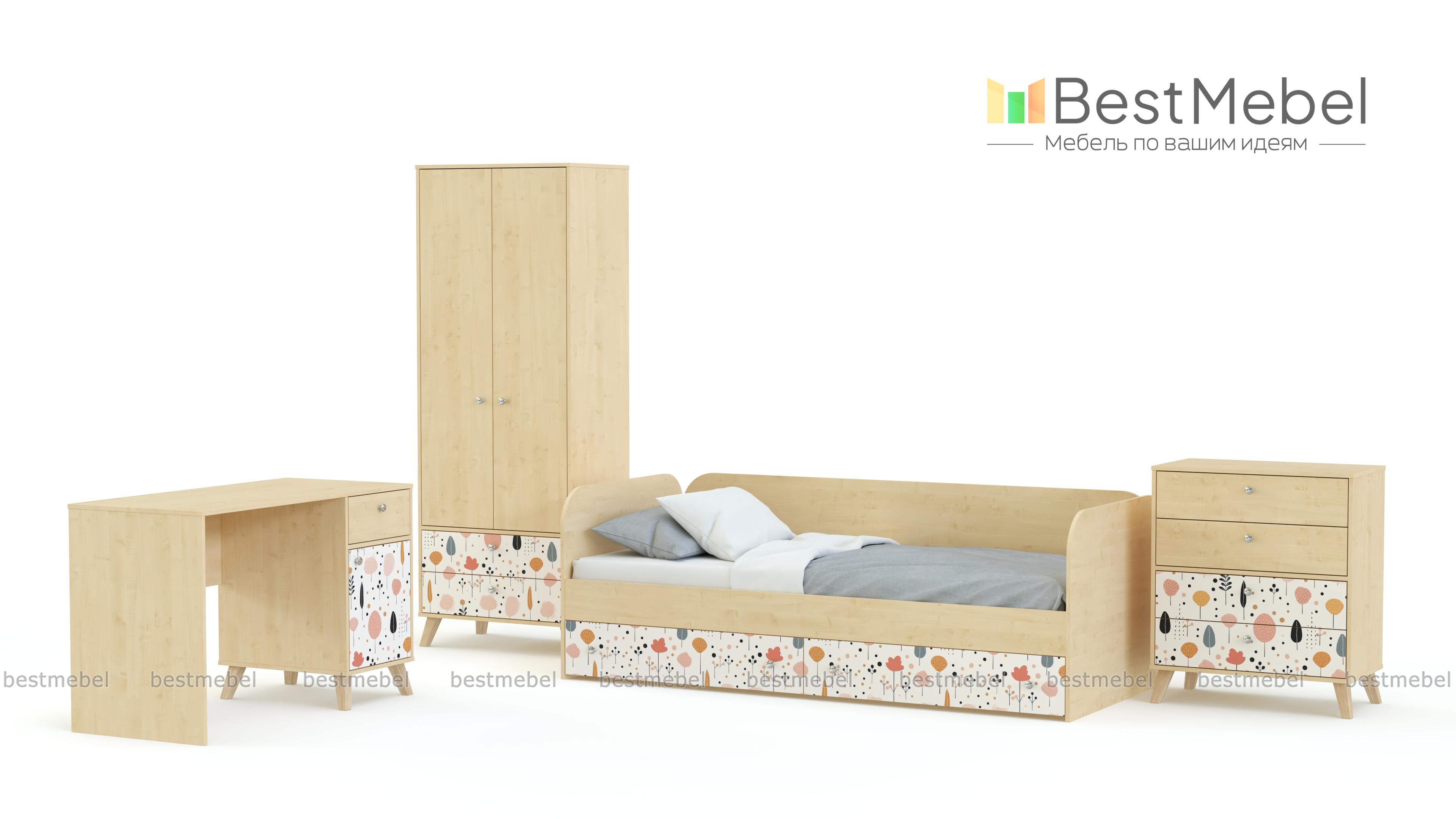 Детская комната Эльза 3 BMS поможет обустроить несколько функциональных зон: для сна, учебы и хранения вещей ребенка. Продуманная конфигурация состоит из кровати с ящиками, письменного стола, комбинированного двухдверного гардероба и комода для белья или игрушек. В нейтральную палитру комнаты добавлены цветные акценты — симпатичный рисунок в технике фотопечати на нижних фасадах. Купить детскую комнату Эльза 3 BMS, изготовленную по вашим размерам, приглашаем к нам в интернет-магазин.