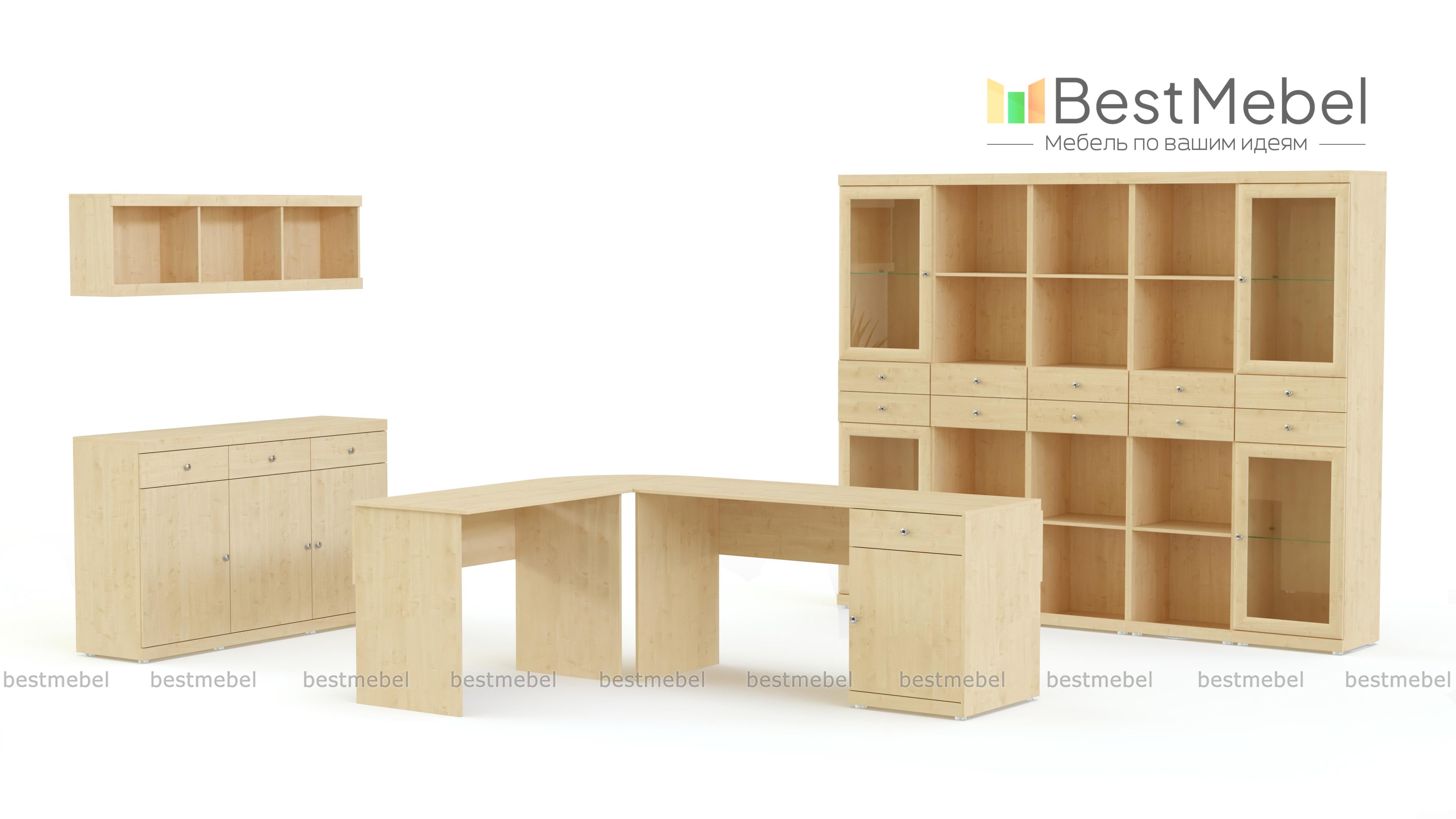 Офисный комплект Meris 1 BMS отличается высоким качеством исполнения и функциональностью. Простые строгие линии и благородные древесные оттенки позволят создать комфортную атмосферу традиционного респектабельного кабинета. Модульная система комплектуется двумя письменными столами с угловым соединительным элементом, витриной, комбинированным стеллажом, тумбой и навесной полкой. Купить офисный комплект Meris 1 BMS, подобрав оптимальное сочетание для вашего интерьера, вы сможете в нашем интернет-магазине.