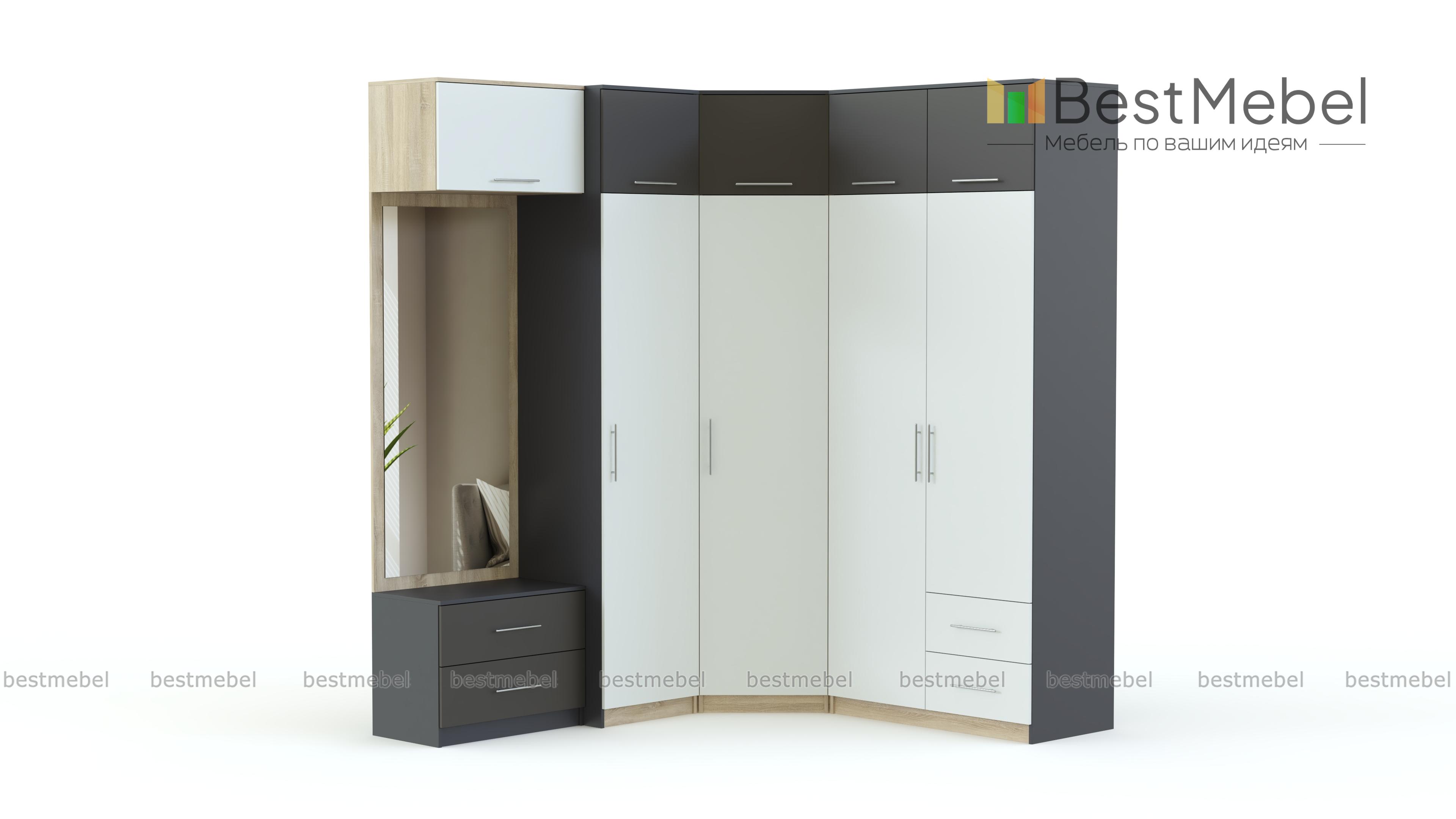 Прихожая Дп-51 BMS – яркая глянцевая модель для современных интерьеров в стиле хай-тек или минимализм. Вместительная благодаря высоте и угловой конструкции, прихожая с отражающими свет поверхностями смотрится визуально легкой. В комплекте распашные шкафы с платяными и бельевыми секциями, дополненные антресолями, роскошное зеркало с фацетом и тумба из двух выдвижных ящиков. Корпус и фасады в сочетании контрастных тонов эффектны, износостойки и долговечны. Купить Прихожую Дп-51 BMS приглашаем в наш интернет-магазин.
