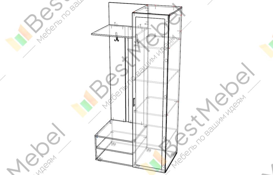 Заказ 00000949857, изделие Прихожая ПВ-3 BMS (1000х2100х550). Долго искал шкаф из-за нестандартных параметров прихожей (нужна открытая часть для электрического щитка и большая глубина). Думал изготавливать на заказ, но нашел этот вариант, который оказался в два раза дешевле. Изменил на сайте глубину на необходимую, выбрал нужный цвет и меньше, чем через 2 недели привезли. Все подошло как хотел.