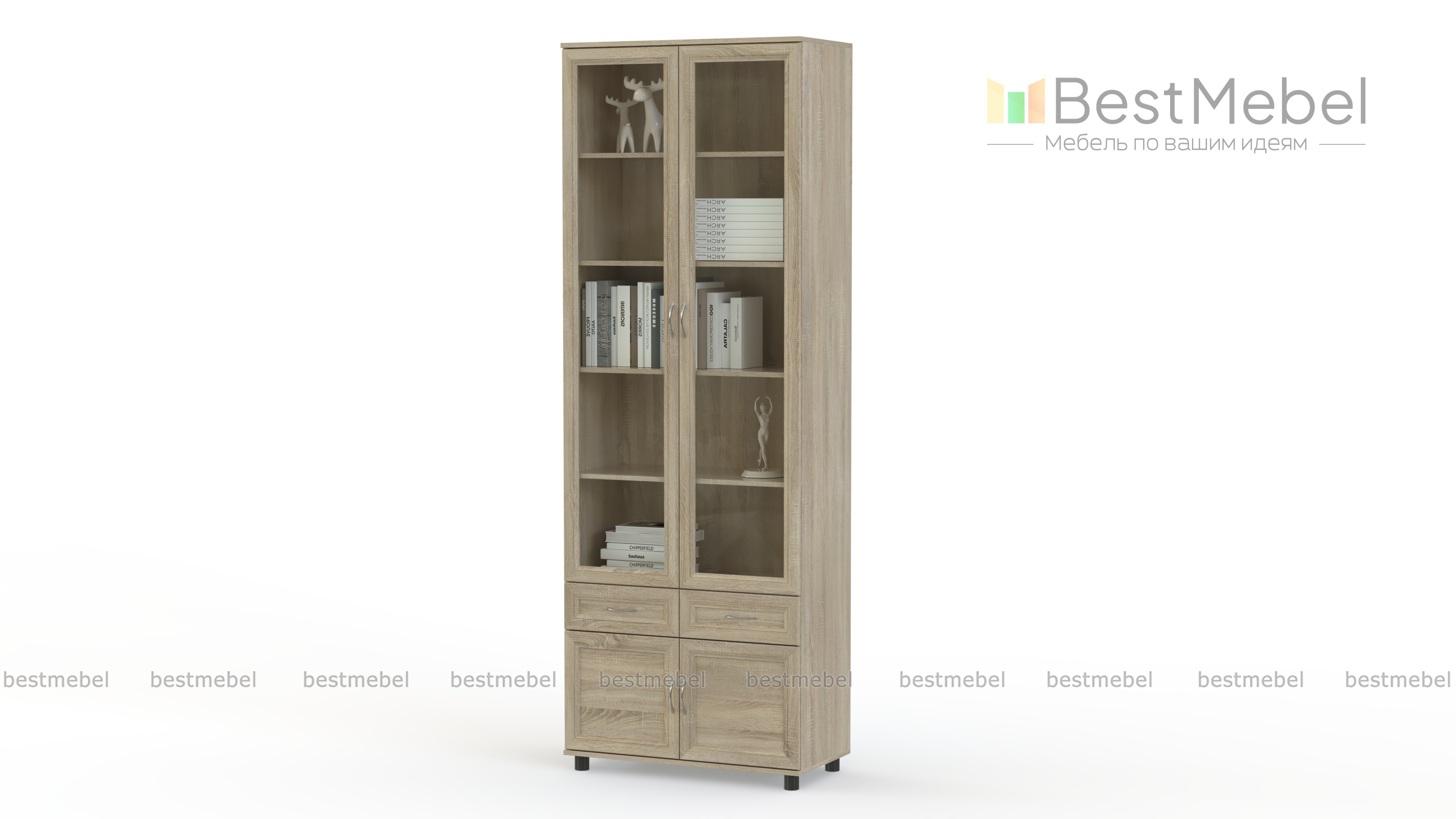 Шкаф для книг Эней BMS отличается компактными размерами, вместительностью и доступной ценой. Модель в классическом стиле с рамочными фасадами легко впишется в интерьер гостиной или рабочего кабинета. Шкаф оборудован просторным застекленным отделением с четырьмя книжными полками, выдвижными ящиками для мелочей и закрытой секцией в основании. Купить шкаф для книг Эней BMS недорого приглашаем в наш интернет-магазин.