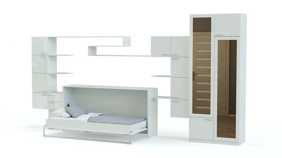 Шкаф-кровать трансформер Жасмин 61 BMS станет отличным выбором для комнаты девочек, сочетая изящный дизайн и функциональность. Композиция 2 в 1 – это не только продуманная до мелочей система хранения, но и комфортное спальное место, в сложенном виде скрытое за фасадом с имитацией дверей. Визуально легкий глянцевый комплект включает в себя напольные и навесные элементы – платяной шкаф, тумбу, навесные распашные секции и открытые полки. Купить шкаф-кровать трансформер Жасмин 61 BMS и оптимизировать пространство вам поможет наш интернет-магазин.