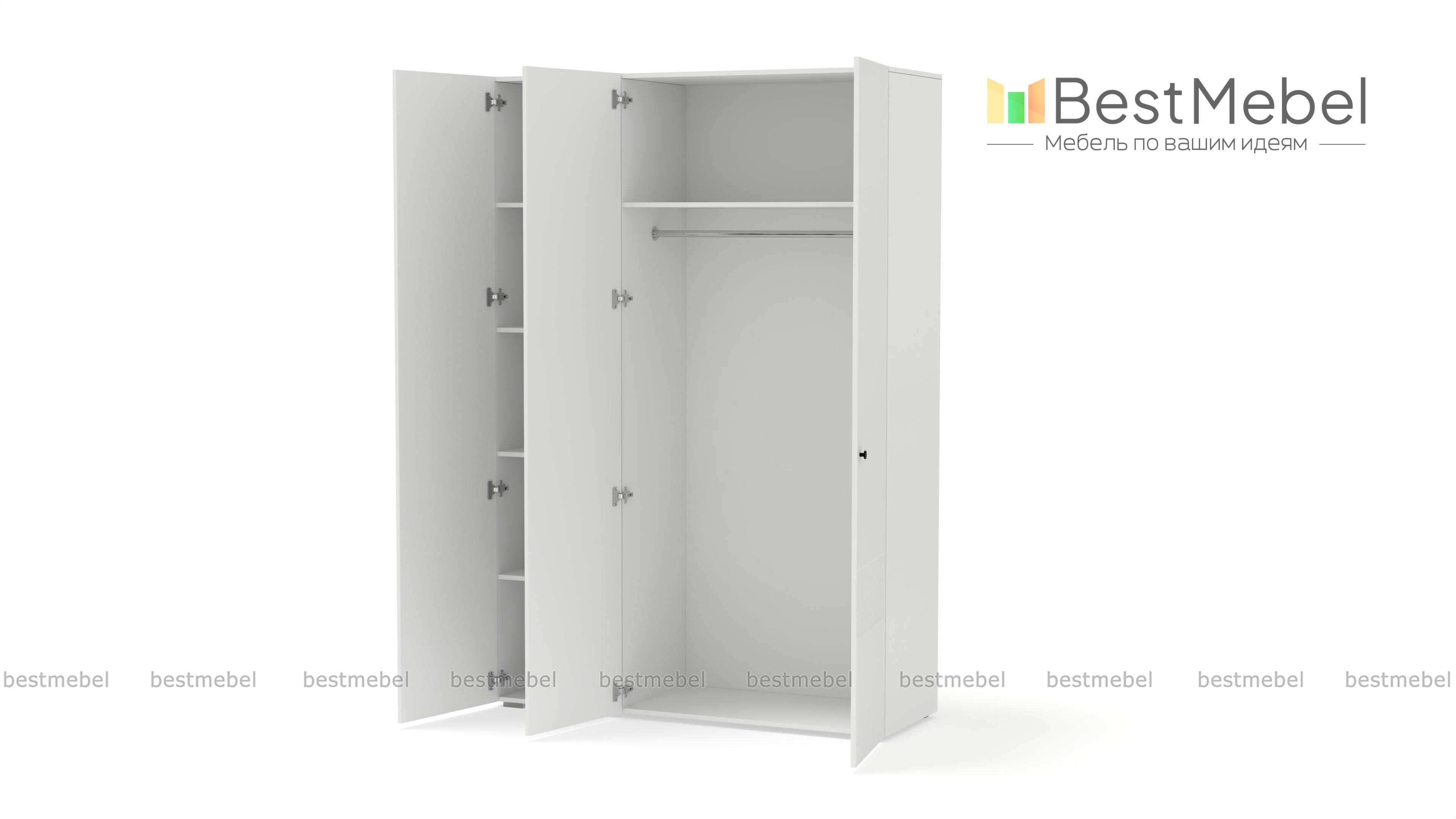Шкаф распашной Джосс 3 BMS — компактный и стильный в двух актуальных оттенках. В отделке сплошного фасада, выполненного из устойчивой к повреждениям МДФ, использован оригинальный рельеф, дверцы легко открываются с помощью маленьких круглых ручек. Для разных вариантов хранения в трехдверной модели предусмотрены как штанга, так и секция с полками. Купить шкаф распашной Джосс 3 BMS с выбором размеров, цвета и фурнитуры вы сможете в нашем интернет-магазине.