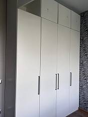 Заказ 00000275042, шкаф распашной Остин Лайт 6 BMS (1700х2500х500). Это не первый мой шкаф с БестМебель. Классно, что можно придумать свое наполнение, очень удобно. В целом качество нормальное, кое-где есть микро сколы, но их видно только при ближайшем рассмотрении, но не при ежедневном использовании. Фурнитура приемлемая, только на верхних полках мы просили не устанавливать пуш-ту-опен механизм, иначе дверцы немного оттопыриваются. Но поскольку туда убраны редко используемые вещи, это не проблема. Так что могу рекомендовать, особенно если требуется какое-то нестандартное исполнение.