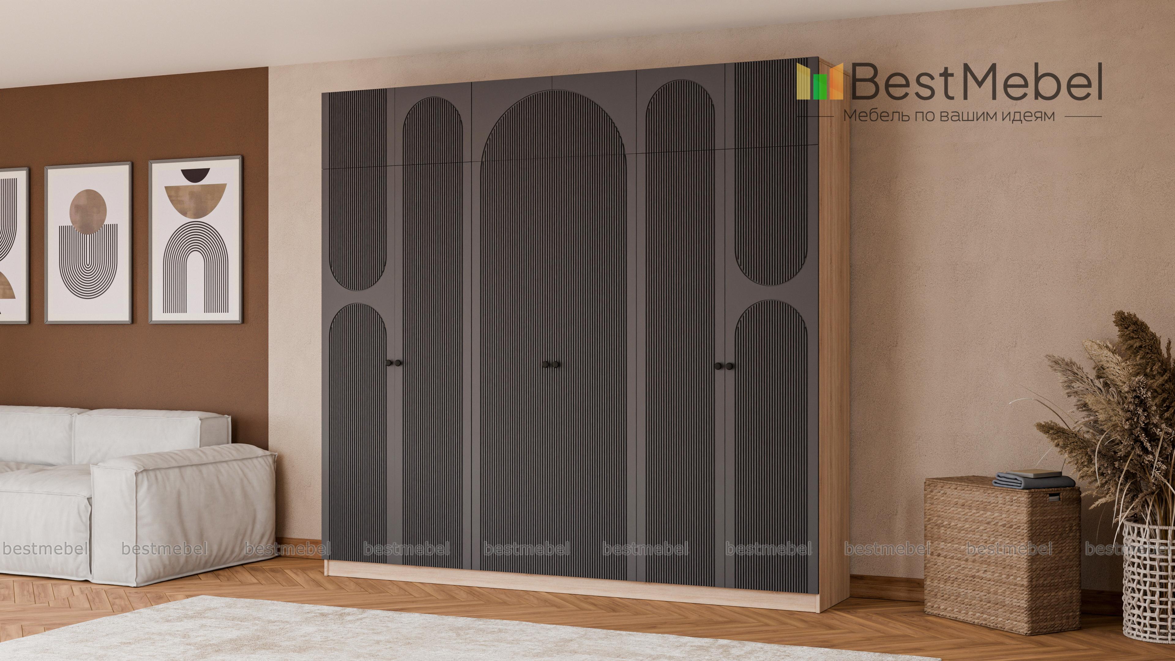 Шкаф распашной Рене 32 BMS с антресолью предоставляет еще больше места для хранения ваших вещей. Дополнительные секции сверху позволяют разместить в этом шестидверном шкафу как одежду и обувь, так и объемные постельные принадлежности. Светлые тона скрадывают габариты модели, а фрезеровка и арочные вырезы на фасадах добавляют легкости. Купить шкаф распашной Рене 32 BMS вы сможете на сайте нашего интернет-магазина в нужном размере и любых оттенках из каталога.