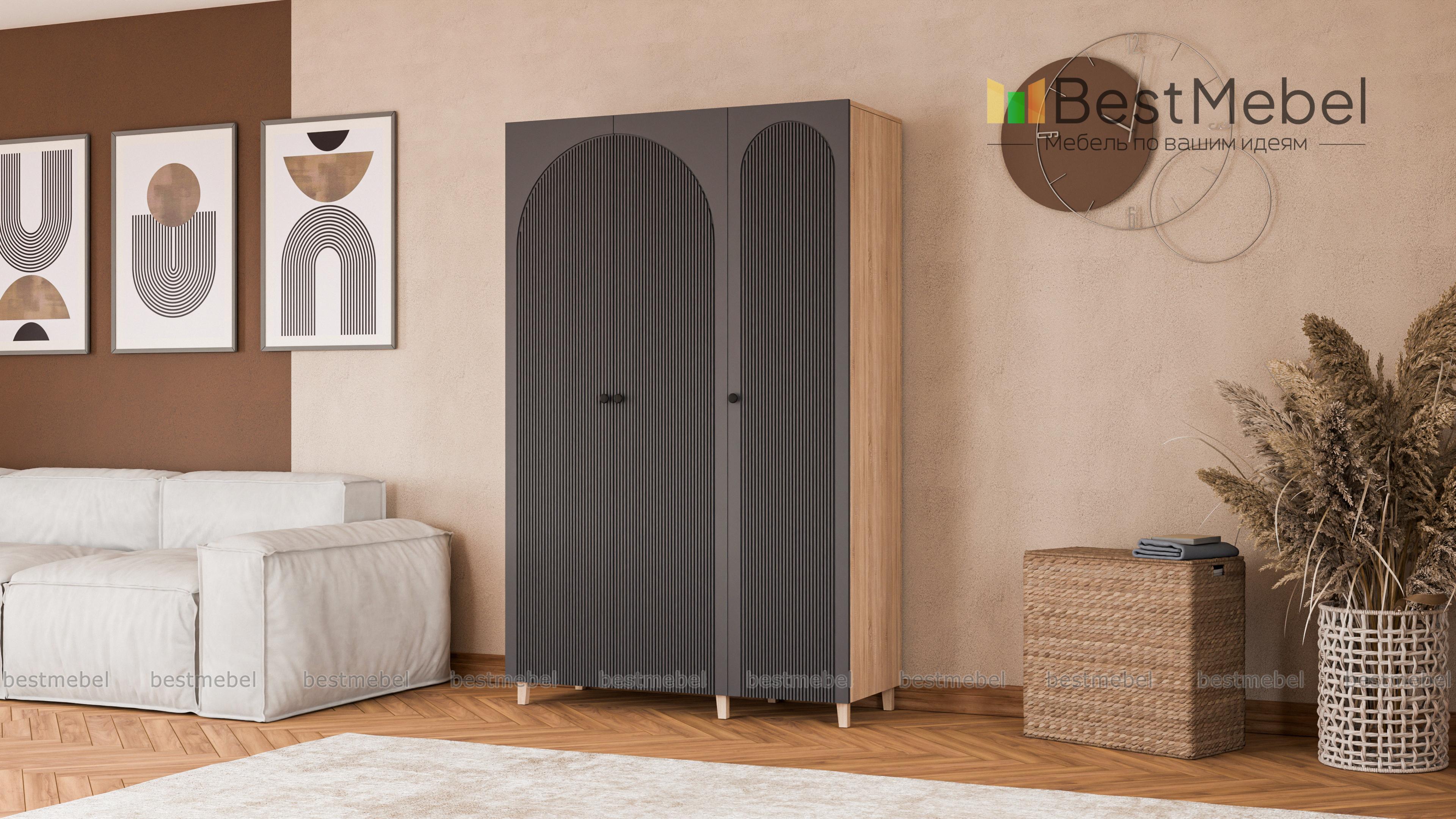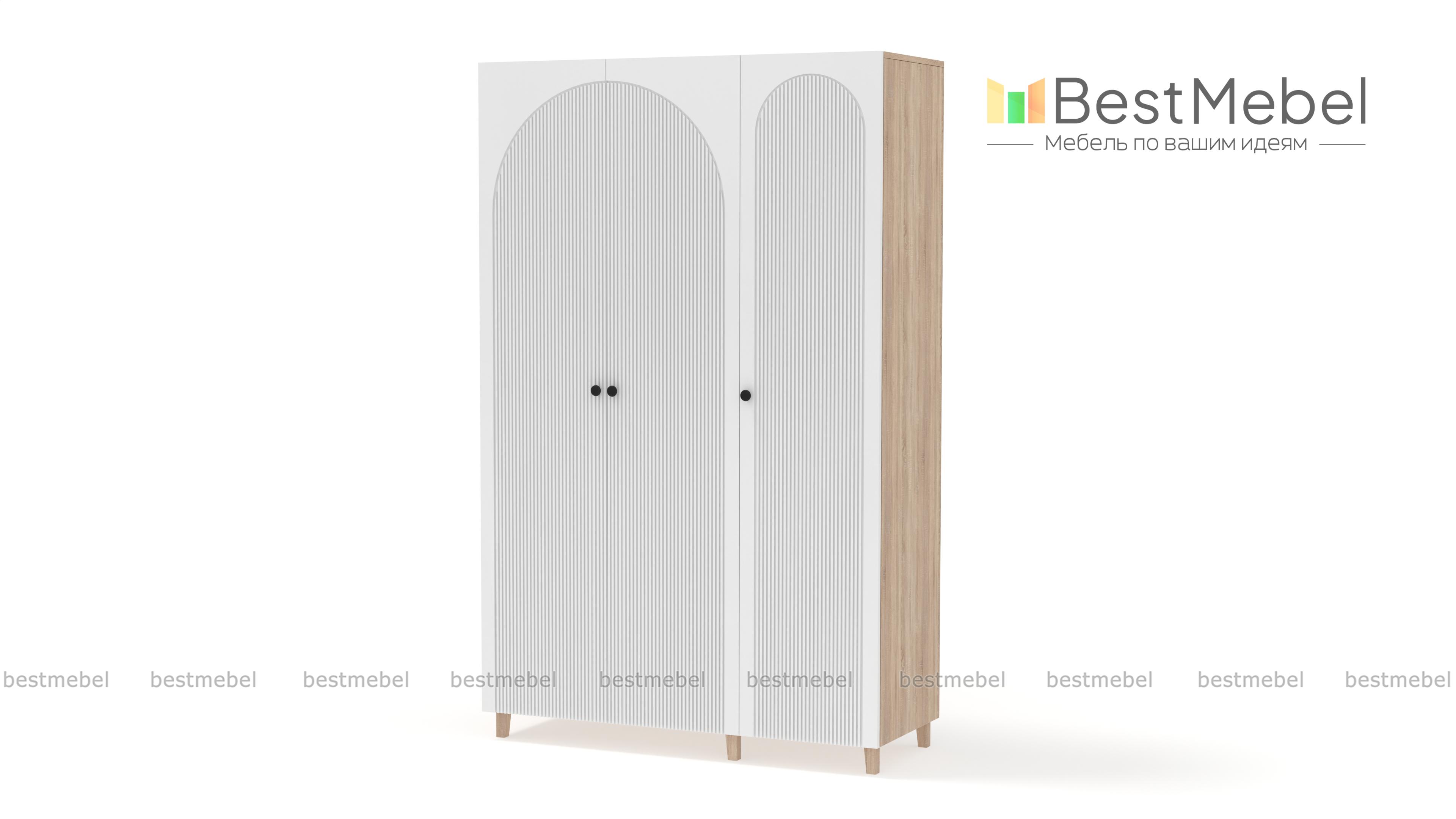 Шкаф распашной Вивьен 6 BMS с высокими ножками отличается легким силуэтом и стильным дизайном. Трехдверный гардероб с рифленым фасадом, выполненный в комфортной природной гамме, прекрасно вписывается в интерьеры детских, спален и прихожих. Продуманная организация внутреннего пространства шкафа позволяет разместить в порядке одежду и обувь. Купить шкаф распашной Вивьен 6 BMS с выбором размеров, цвета и наполнения можно на сайте нашего интернет-магазина.