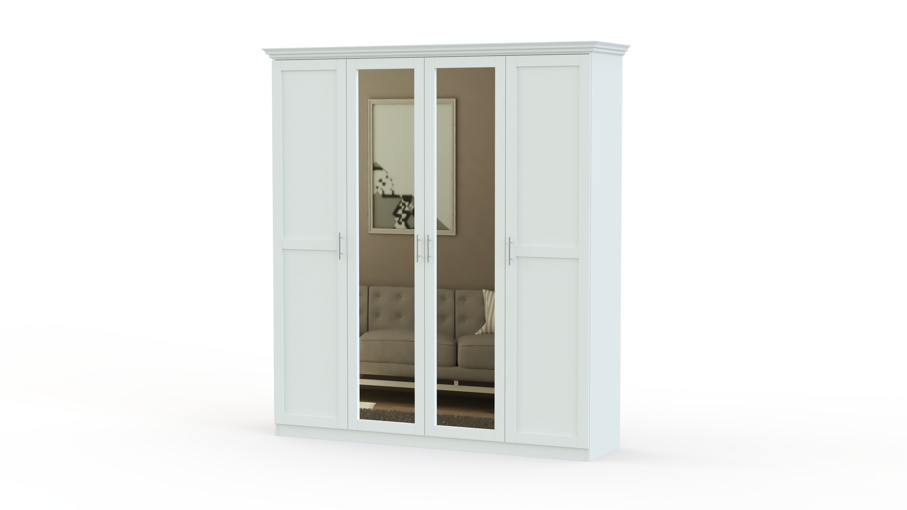 Спальня СП-4565 BMS – качественный комплект, доступный по привлекательной цене. Все детали выполнены из современных сертифицированных материалов — ЛДСП и МДФ. Все предметы набора можно выбрать самостоятельно на сайте нашего магазина, чтобы создать уникальную обстановку. В базовой версии в комплект вошли самые важные элементы, без которых невозможно представить современную спальную комнату. Просторная кровать с невероятно красивым изголовьем изящной формы с обивкой, украшенной каретной стяжкой, имеет прикроватные тумбы. Большой четырех-створчатый шкаф со встроенным зеркалом вместит весь гардероб. Нарядно выглядит традиционный комод, над которым размещено настенное зеркало в раме оригинальной формы. На сайте нашего магазина вы можете ознакомиться с широкой палитрой расцветок, и выбрать ее на свое усмотрение. Купить спальню СП-4565 BMS предлагаем по крайне привлекательной цене прямо сейчас. Доставку сделаем быстро и бесплатно.