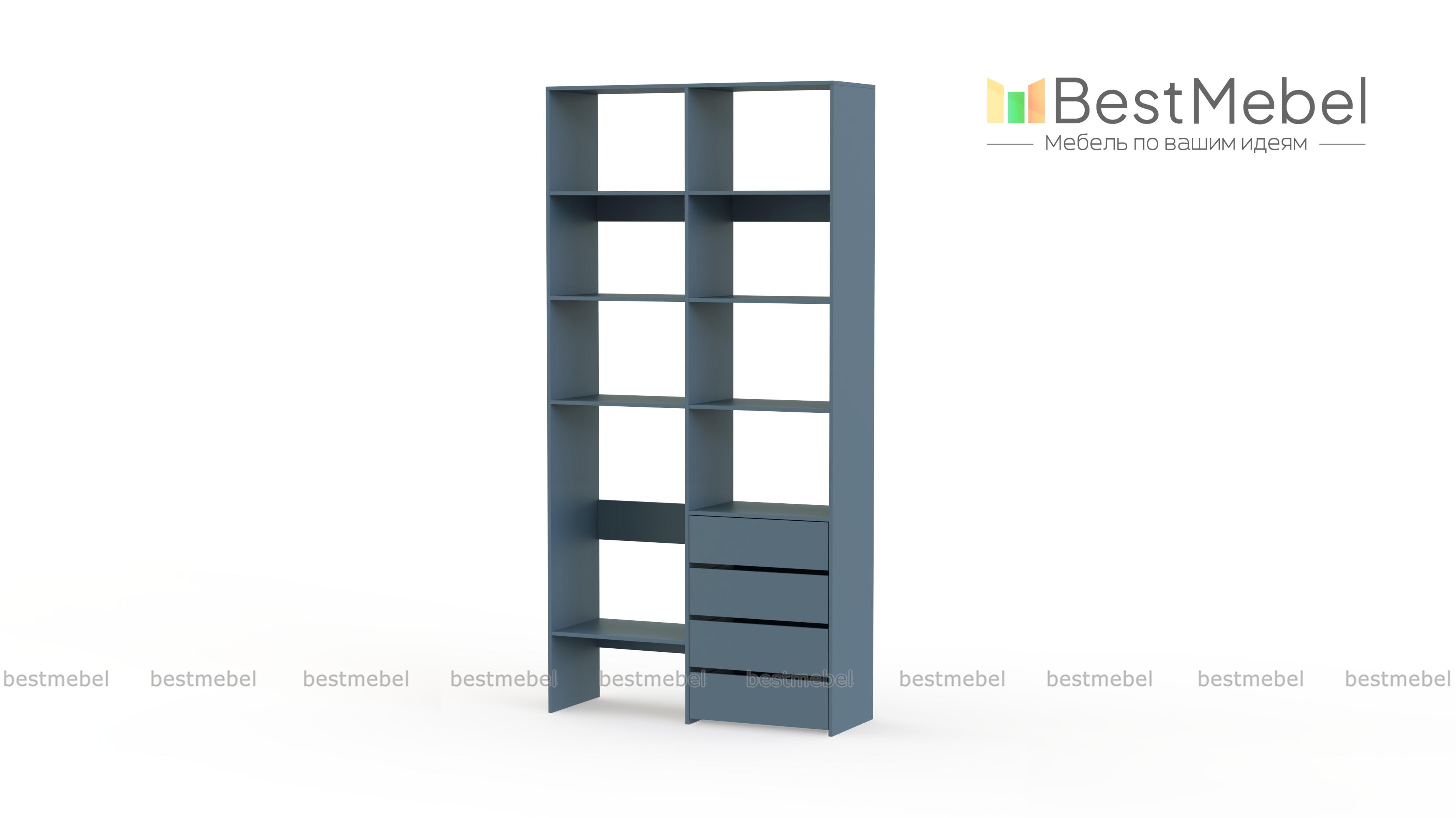 Стеллаж для одежды Мирта 4 BMS – практичное решение для гардеробной, детской комнаты или спальни. Лаконичный современный дизайн сочетается с надежной конструкцией из устойчивой к повреждениям ламинированной плиты. Открытые секции разной высоты помогут вам разместить как небольшие, так и габаритные вещи, а для мелочей предусмотрены четыре выдвижных ящика. Купить стеллаж для одежды Мирта 4 BMS приглашаем в наш интернет-магазин с выбором размеров и цвета по каталогу.