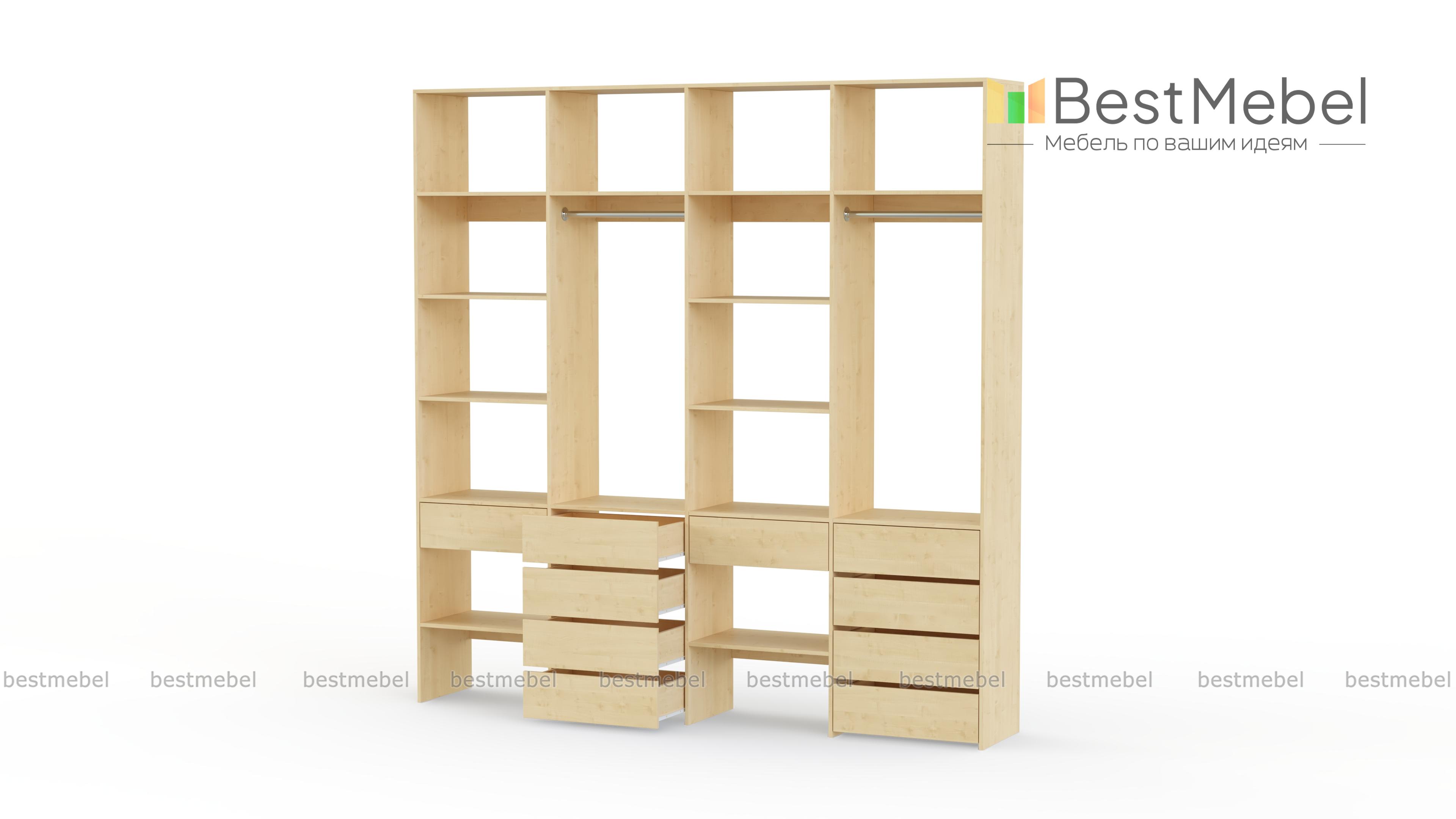Стеллаж для одежды Мирта 61 BMS обеспечит удобное хранение вашим вещам, помогая поддерживать порядок в доме. В конструкции вместительного четырехсекционного стеллажа чередуются открытые полки и штанги, а выдвижные ящики выполняют функцию комода. За ламинированными поверхностями легко ухаживать и стеллаж надолго сохранит свой эстетичный вид. Купить стеллаж для одежды Мирта 61 BMS в необходимом размере и подходящем вашему интерьеру оттенке вы сможете в нашем интернет-магазине.