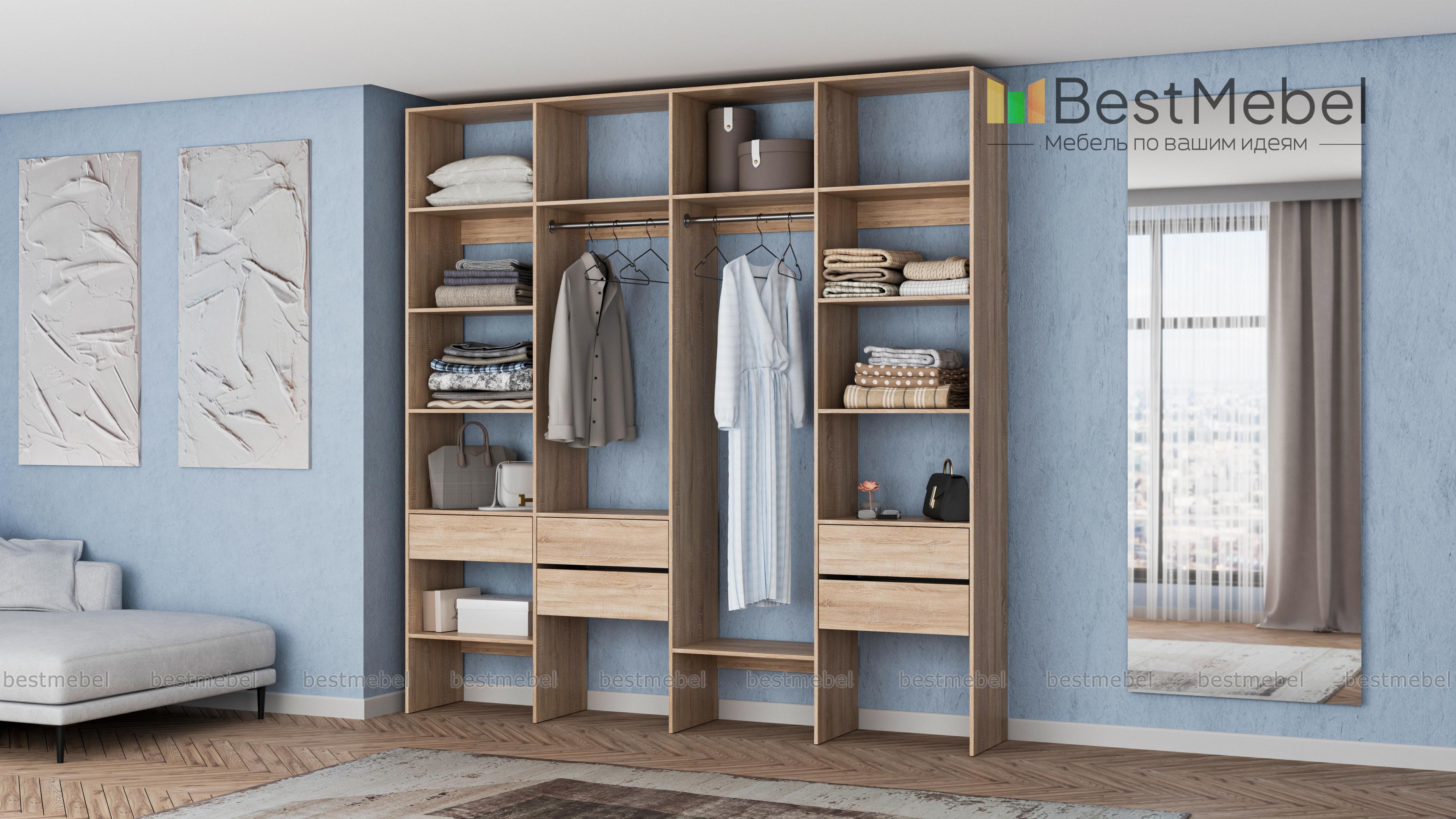 Стеллаж для одежды Мирта 68 BMS поможет вам рационально использовать пространство. Одежда и обувь, аксессуары и прочие необходимые вещи будут всегда в удобном доступе благодаря комбинации двух штанг, расположенных на разной высоте полок и пяти выдвижных ящиков. Прочная ламинированная плита обеспечивает конструкции надежность и немаловажную для гардеробной простоту ухода. Купить стеллаж для одежды Мирта 68 BMS приглашаем в наш интернет-магазин с выбором цвета и габаритов.