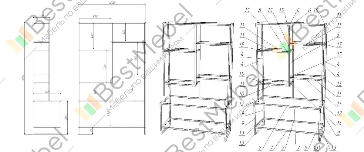 | Конструкция | С полками, Открытая, Без задней стенки |