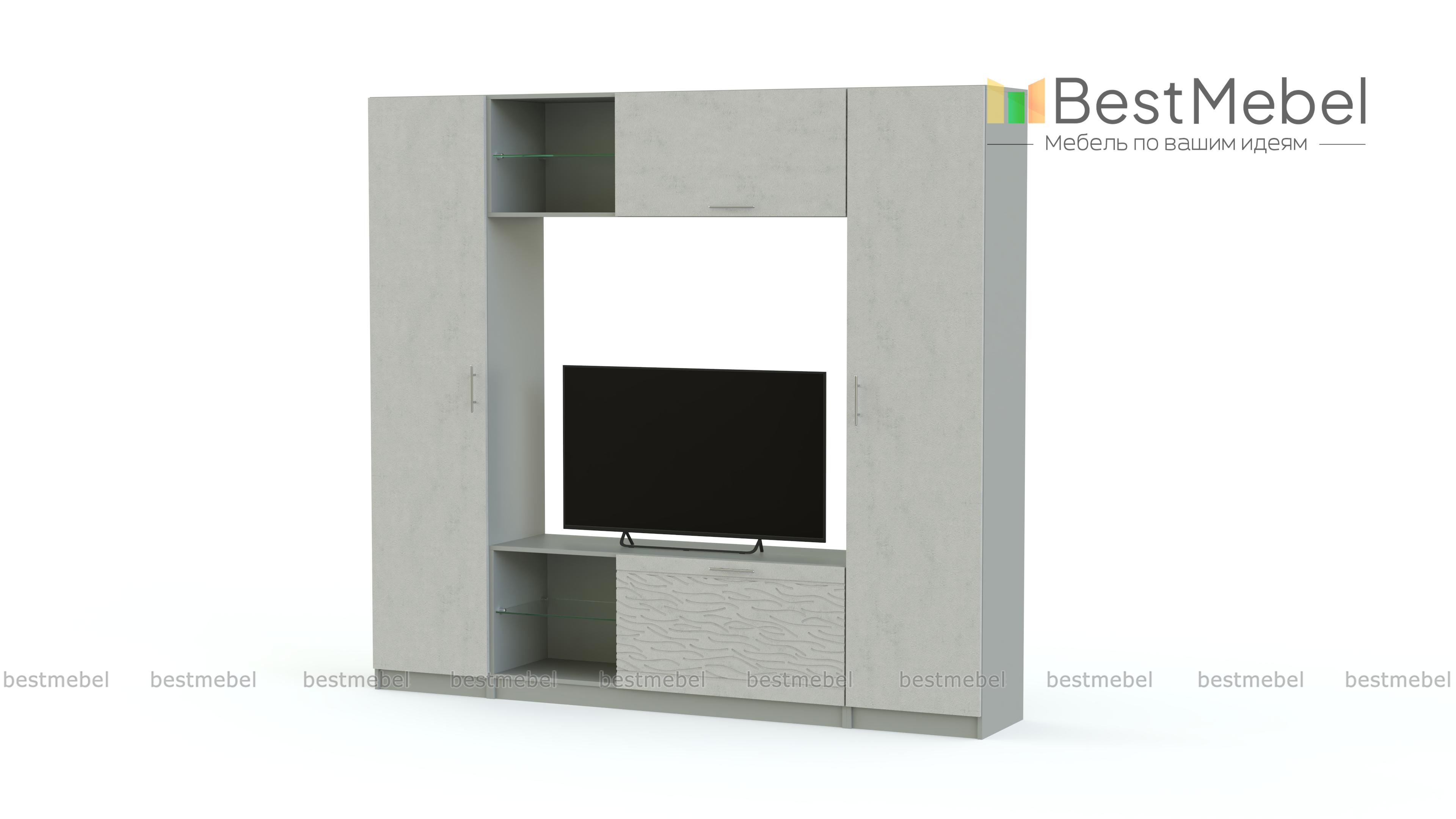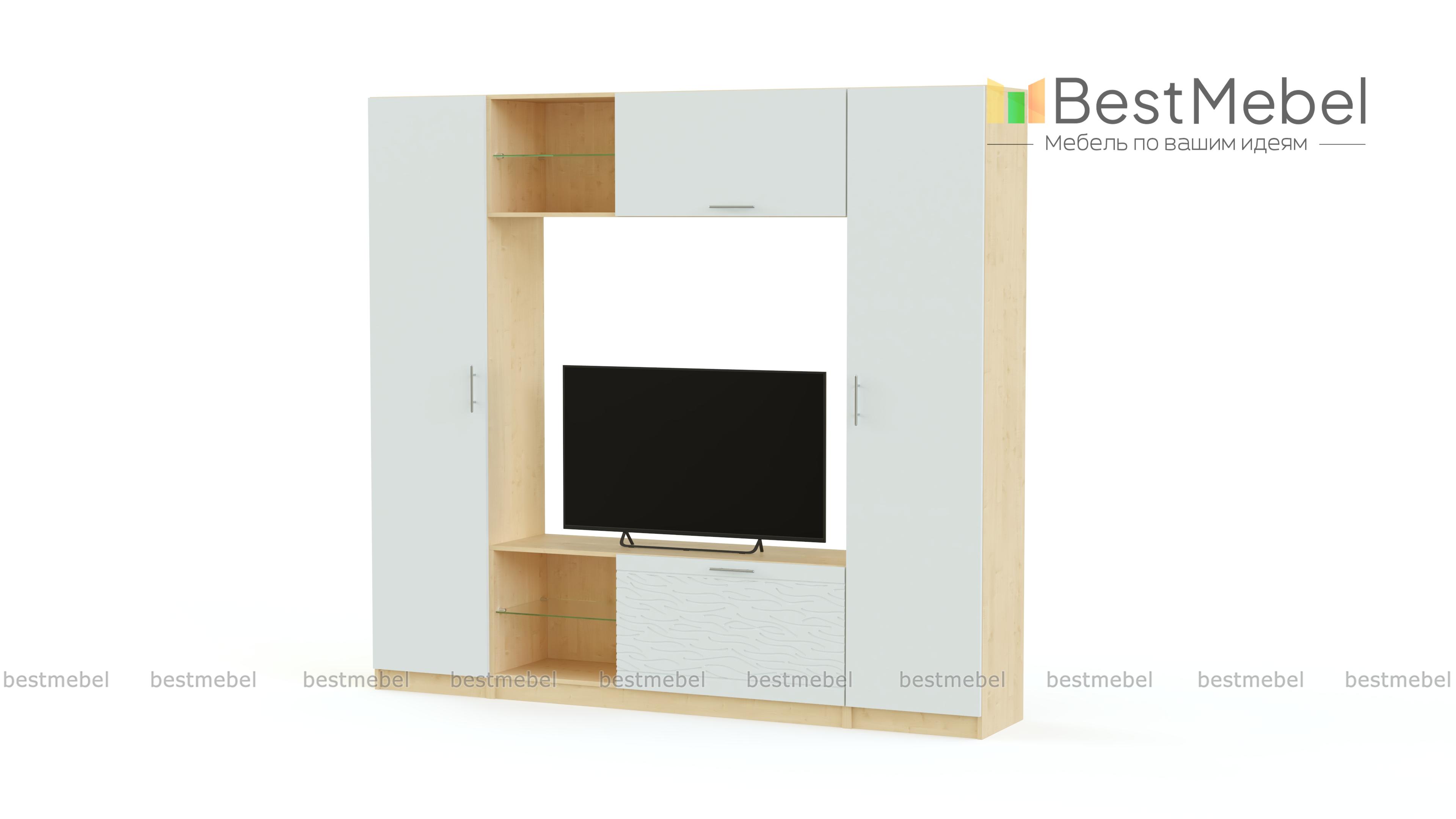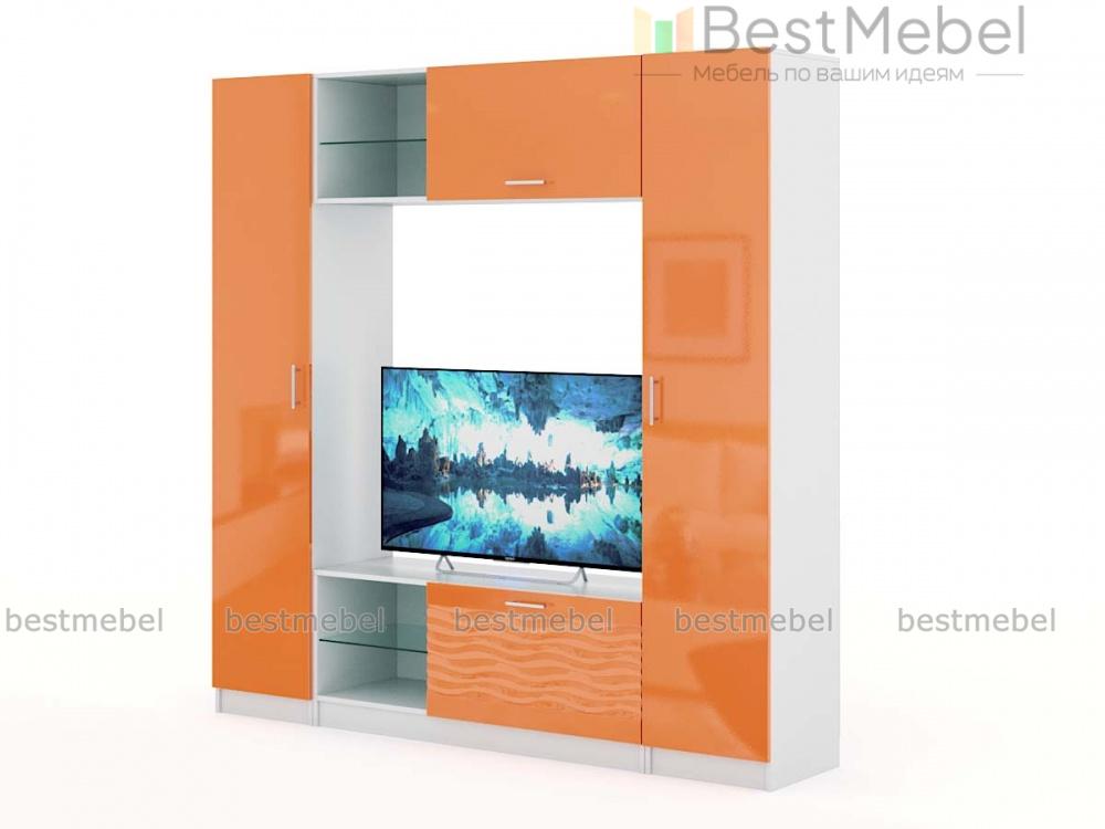 Стенка-горка Вельвет 2 Глянец BMS поможет оборудовать современную гостиную в стиле минимализм и хай-тек. Выполненная в универсальном белом корпусе и эффектном ярком фасаде, модель отличается строгой геометричной формой. Единая композиция с просторной нишей под ТВ в центре включает в себя бельевую колонку, колонку с торцевым стеллажом, низкую тумбу и комбинированную со стеклополкой антресольную секцию. Интересная деталь - 3D рисунок на фасадах. Купить стенку-горку Вельвет 2 Глянец BMS по демократичной цене приглашаем к нам в интернет-магазин.
