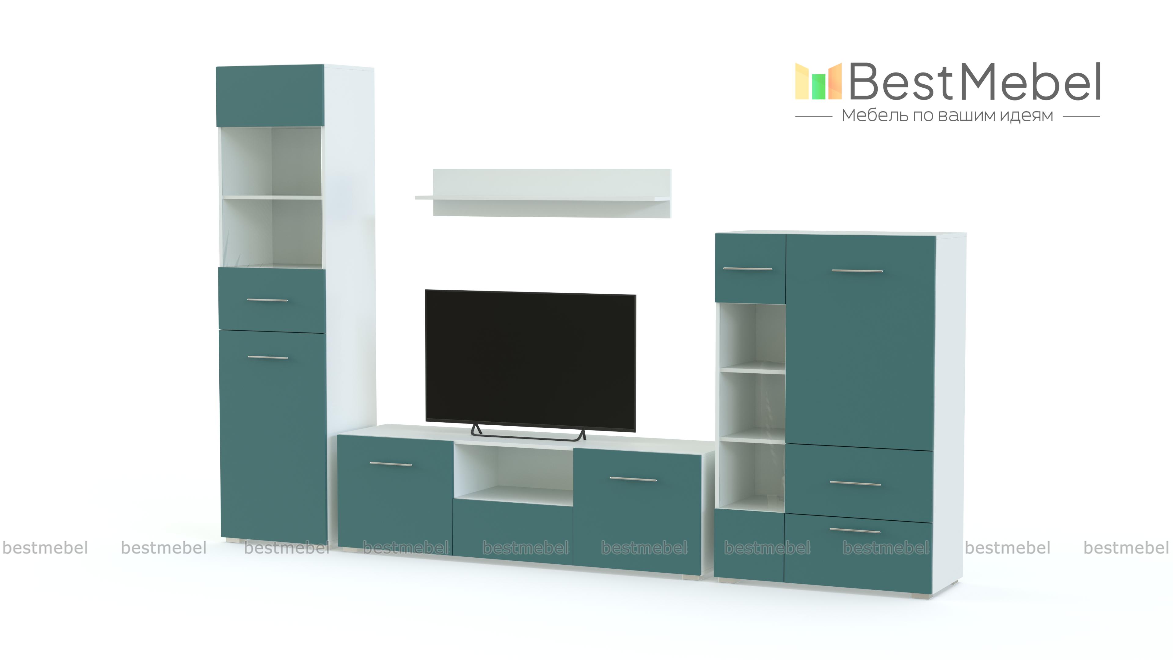 Стенка Неко 27 BMS создана для меблировки лаконичных и функциональных современных гостиных. Входящие в комплект модули максимально просты по форме, но смотрятся эффектно за счет сочетания темных тонов и цветного фасада. Стенка оборудована широкой низкой тумбой под ТВ, двумя комбинированными шкафами с витринами – высоким и низким, и навесной открытой полкой для предметов декора, книг и мелочей. Купить стенку Неко 27 BMS, подобрав подходящее цветовое решение, вы сможете недорого в нашем интернет-магазине.