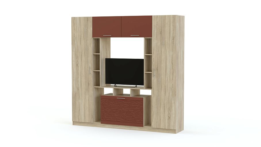 Стенка Вельвет 13 BMS – это прямая модель удобных средних габаритов, идеальный вариант для современных квартир стандартной планировки. Минималистичный дизайн стенки эффектно подчеркивает цветовое решение – классические древесные оттенки и яркий терракотовый с рельефным рисунком. Размещение аппаратуре, книгам, интерьерным украшениям и одежде обеспечат две бельевые колонки, оригинальная тумба с нишами, мини-стеллажи и антресоль с откидными дверцами. Купить стенку Вельвет 13 BMS, подобрав оптимальные параметры, приглашаем в наш интернет-магазин.