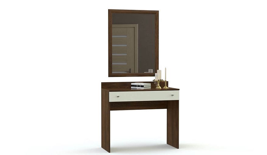 Туалетный столик Валерия 2 BMS легко впишется в интерьеры разного типа благодаря классическому дизайну. Строгие линии модели подчеркивает контрастное сочетание корпуса темных древесных тонов и белого фасада. Столик оборудован одним широким выдвижным ящиком для хранения косметики и аксессуаров и просторной столешницей с защитным бортиком. Дополняет композицию большое навесное зеркало в раме. Купить туалетный столик Валерия 2 BMS вы всегда сможете в нашем интернет-магазине по доступной цене.