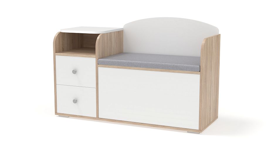 Обувница с сиденьем Домовой-2-40 BMS выполнена в нейтральных светлых оттенках, безопасно скруглена по краям и станет частью комфортного, уютного пространства. Модель объединила тумбу с двумя выдвижными ящиками и нишей для мелочей и просторное обувное отделение с откидной крышкой. Мягкая тканевая обивка превращает обувницу в удобную банкетку. Купить обувницу с сиденьем Домовой-2-40 BMS, которая поможет оптимизировать хранение сезонной обуви и аксессуаров, вам поможет наш интернет-магазин.
