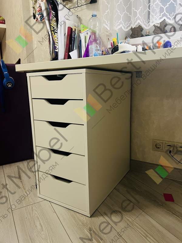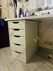 Очень долго искал этот аналог тумбочки из Икеи. качество хорошее, материал тоже. Удобно то, что можно выбрать свой размер. Т к у меня широкая столешница, то пришлось и икать широкую тумбочку.