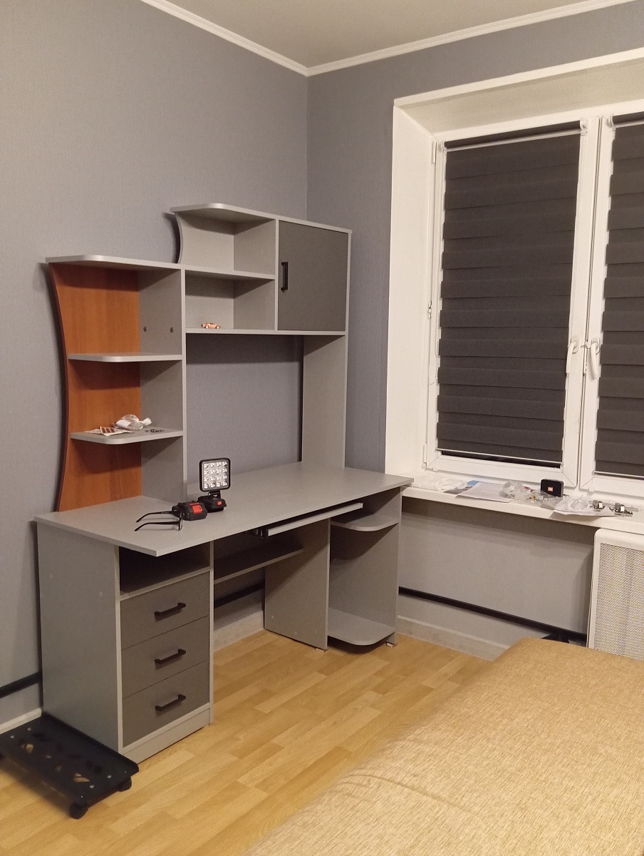 Заказывали стол с небольшой корректировкой по размерам и прямой столешницей. Результат полностью соответствует ожиданиям и идеально подходит под будущий интерьер комнаты. Сын доволен. Подгонка деталей идеально точная. Есть неудобства в процессе сборки - надстройка с одной стороны крепится снизу столешницы, да и в самой надстройке есть места сборки "сверху вниз". Дважды частично разбирали). При этом все детали пронумерованы и подписаны, что облегчает их поиск. Островата кромка, но я и заказывала базовую, самую тонкую. И дверца полки чуть заваливается внутрь, нужен ограничитель. В целом покупкой очень довольны, особенно с учётом индивидуального изготовления и соотношения цена-качество. Будем заказывать ещё, вторая комната на подходе)