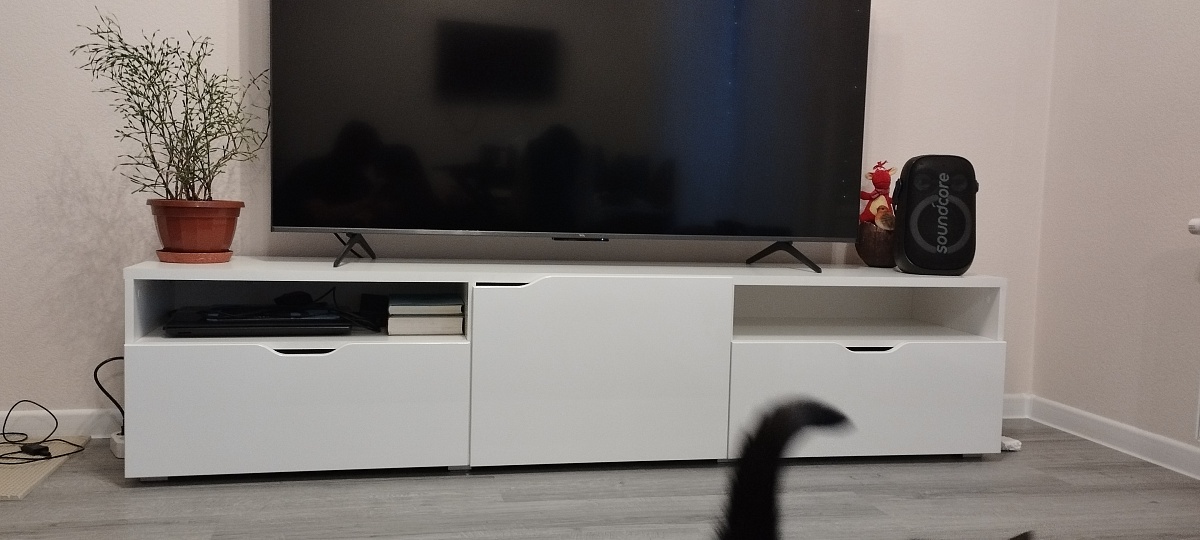 Заказ 1104688, тумба под телевизор.Спасибо, отличная тумба, хорошо вписалась в гостиную. Заказывала под свои размеры - спасибо интернет-магазину, очень удобная навигация.Единственное пожелание - доработать выпилы вместо ручек - слишком мелкие, приходится подхватывать ящик или дверцу ногтями, поэтому снимаю одну звезду.В остальном всё отлично - детали подогнаны хорошо, нигде никаких перекосов или выступов.