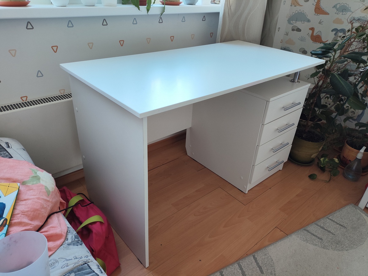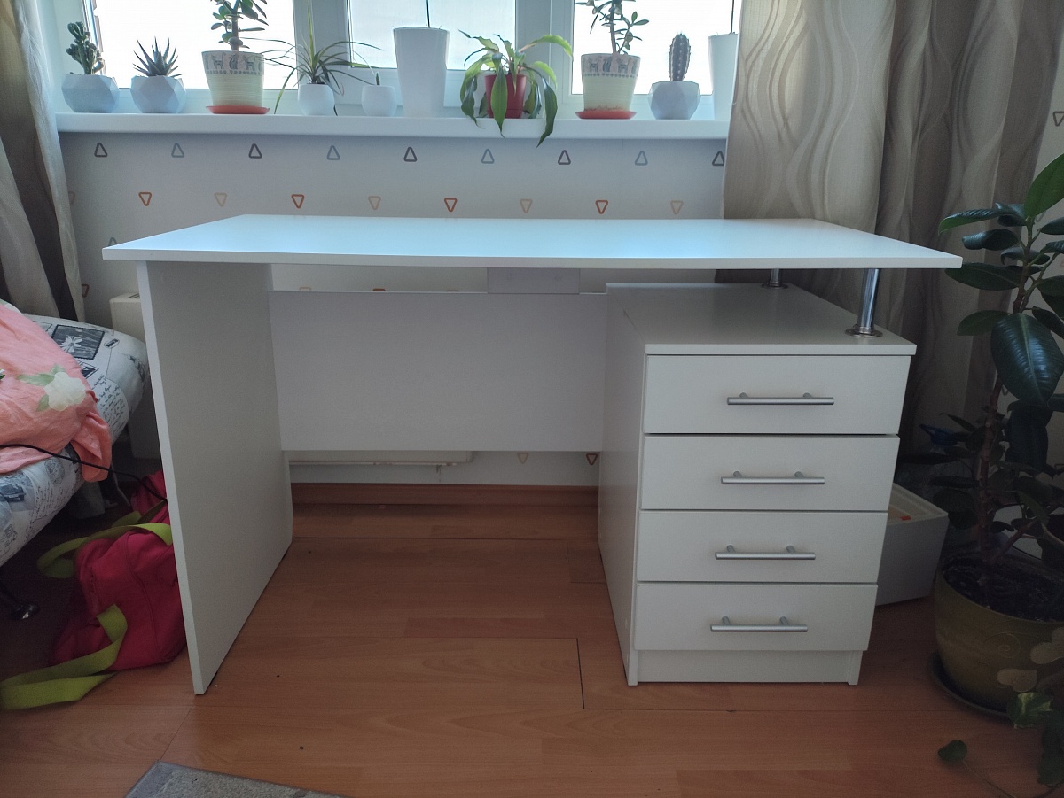 Заказала стол ребенку (Заказ 00000803561). Нужно было, чтоб было много ящиков закрытых. Поэтому выбор пал на данный стол. Понравилось то, что можно было его поменять и доработать под себя. Поменяли фурнитуру на более качественную, увеличили высоту, добавили полку под монитор. Цена, конечно, при этом увеличилась, но и стол получился фактически по  индивидуальному проекту.  Муж забирал сам, собирал тоже сам. Нам все понравилось (все наши пожелания были учтены, ничего не забыто). Будем заказывать еще себе стенку.
