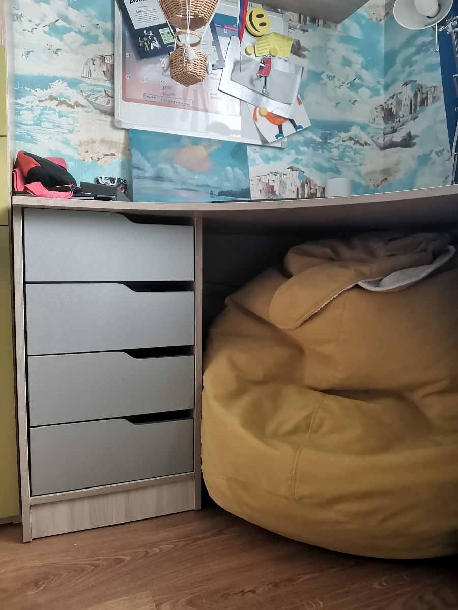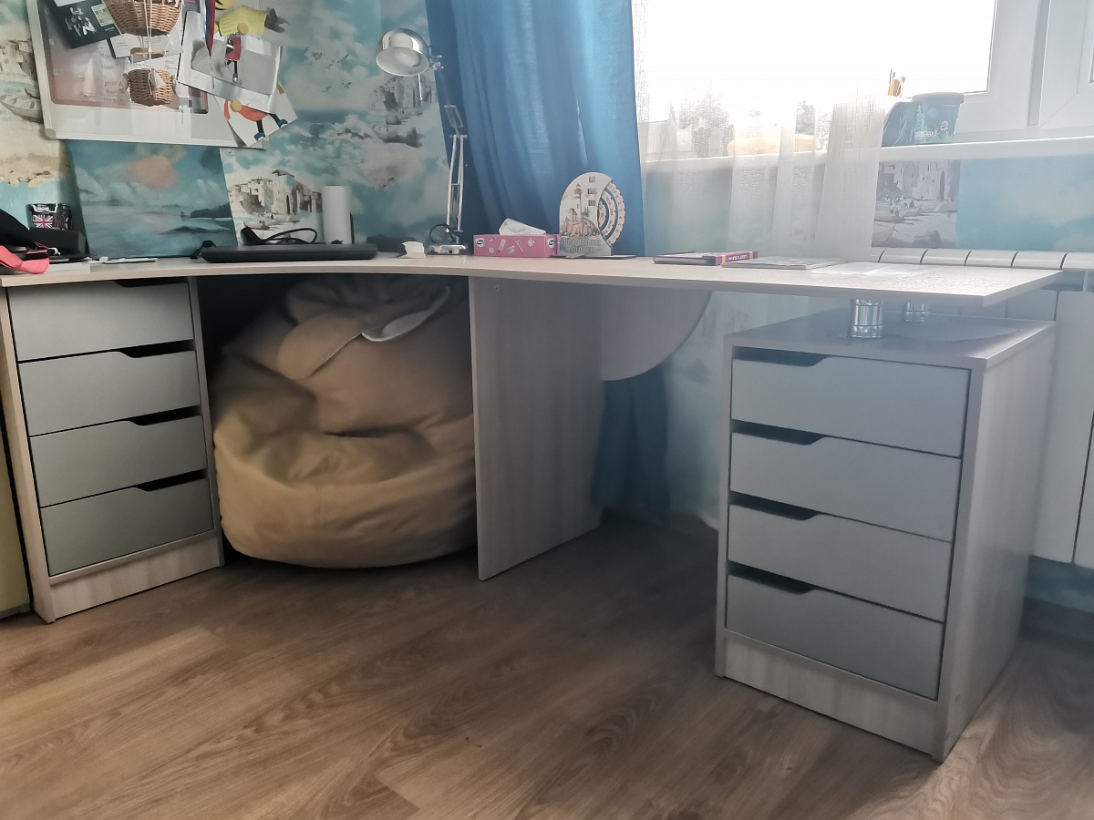 Заказала детям, чтобы делали уроки, а он им так понравился, что теперь поделить не могут, видимо придется второй такой же брать ) Собирали сами, основную часть дети, достаточно легко. Внешне очень хорошо смотрится, размеры подогнали под свои габариты (1000х900х450), ящички в тумбочке маловаты только, учебники не влезают, но тетради /канцелярию и пр. мелочевку убрали. Смотрится в меру ярко, не пестрит, сидеть за ним удобно. Однозначно рекомендую к покупке. Заказ 00000795250.