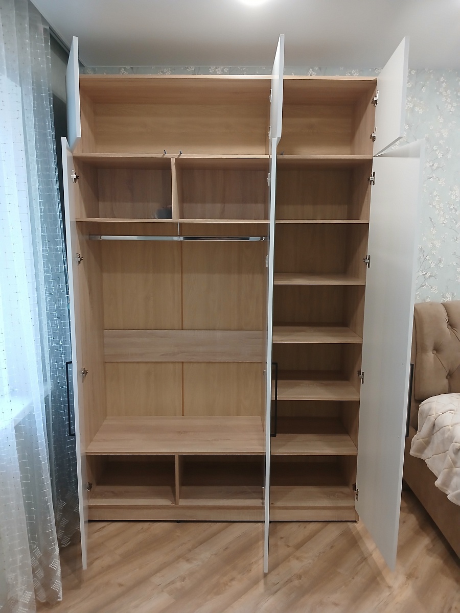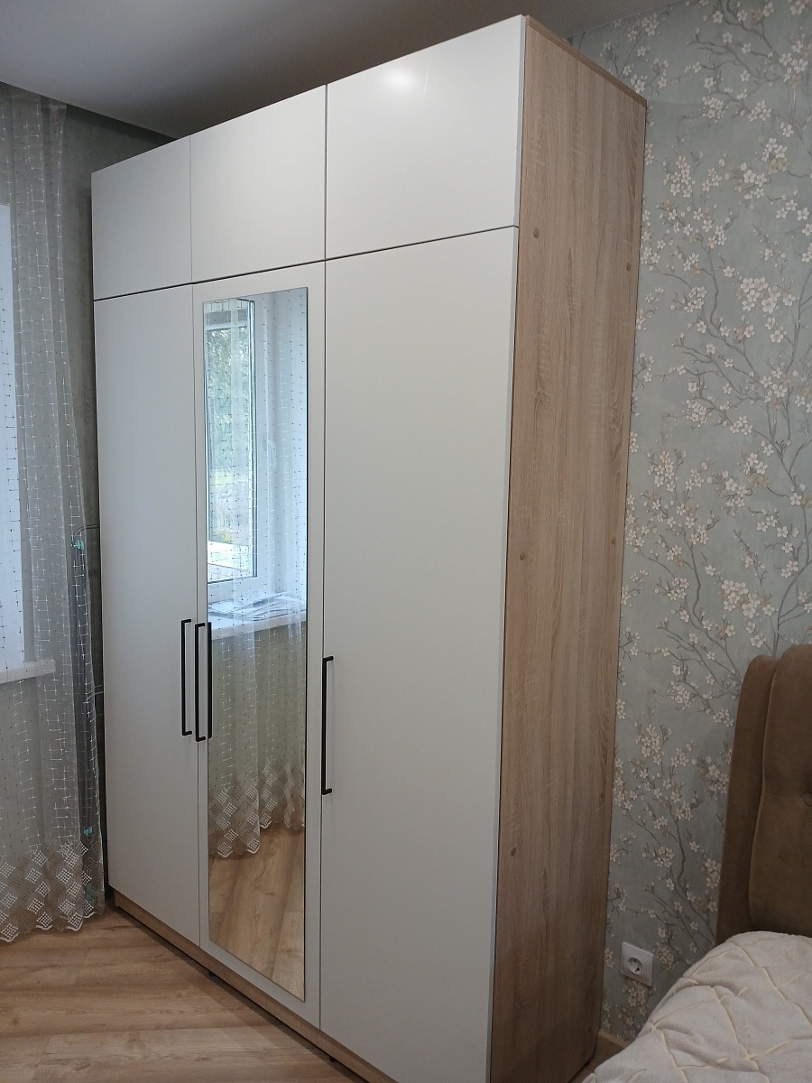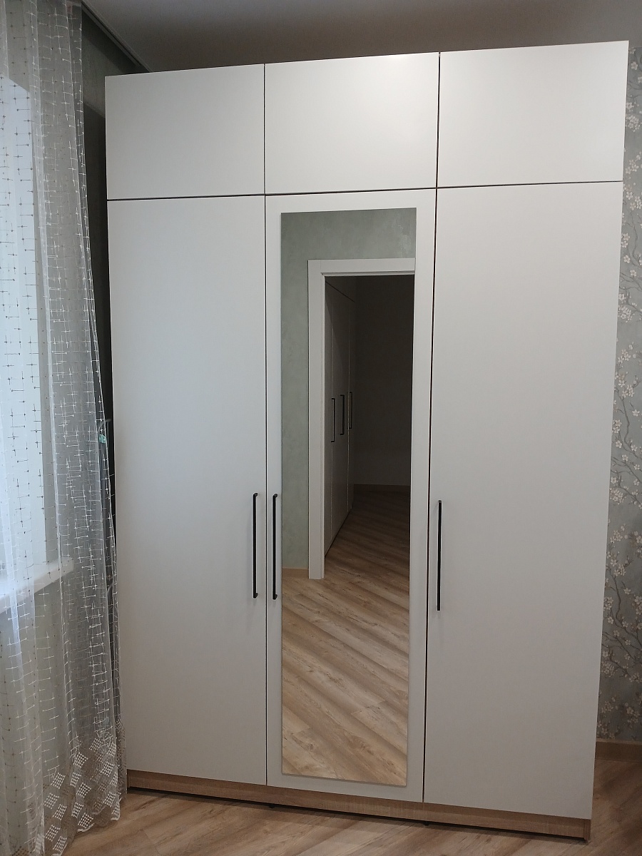 Отличный шкаф. Сделали под мои параметры, под потолок и шириной нужной до шага в 1мм. Расчитали по запросу на каком расстоянии будет центральная стойка (т.к. на стене электрощиток). Заказ 00000750155  Распашной шкаф Эльпассо