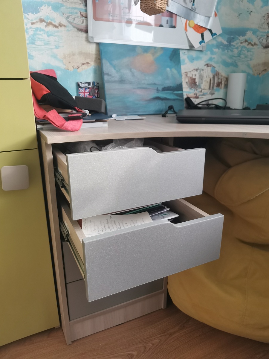 Заказ 00000797492, изделие Ин Проект стол №000092807 (2000х720х1200)Приехали в салон, посмотрели варианты фасадных элементов, сразу определились с комплектацией, затем  уже по телефону внесли корректировки и запустили в производство. Ждали буквально несколько дней, доставка быстрая, всё было аккуратно упаковано. Собрали с сыном неспеша, за несколько дней небольшой конструктор для взрослых. Детям понравился, у каждого своя тумбочка и рабочая зона.