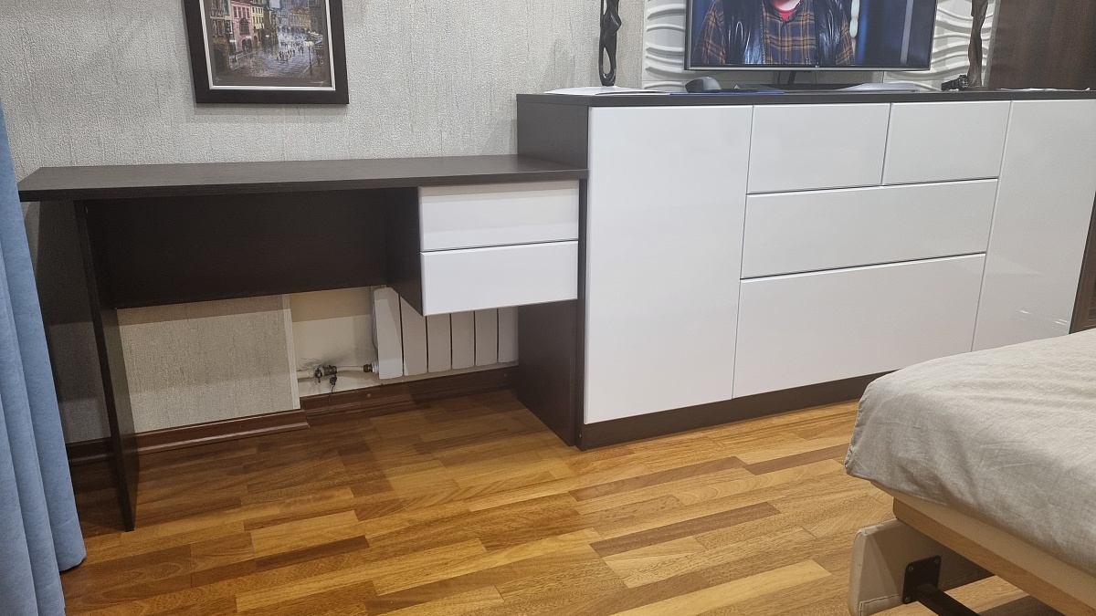 Заказали комод и к нему письменный стол , подобрали стиль, цвет и добавили индивидуальные размеры. Все детали согласовали , очень быстро изготовили, собрали сами! Очень довольны! Спасибо BestMebel!Единственная просьба - упаковывать без опилок, они царапают панели при доставке!
