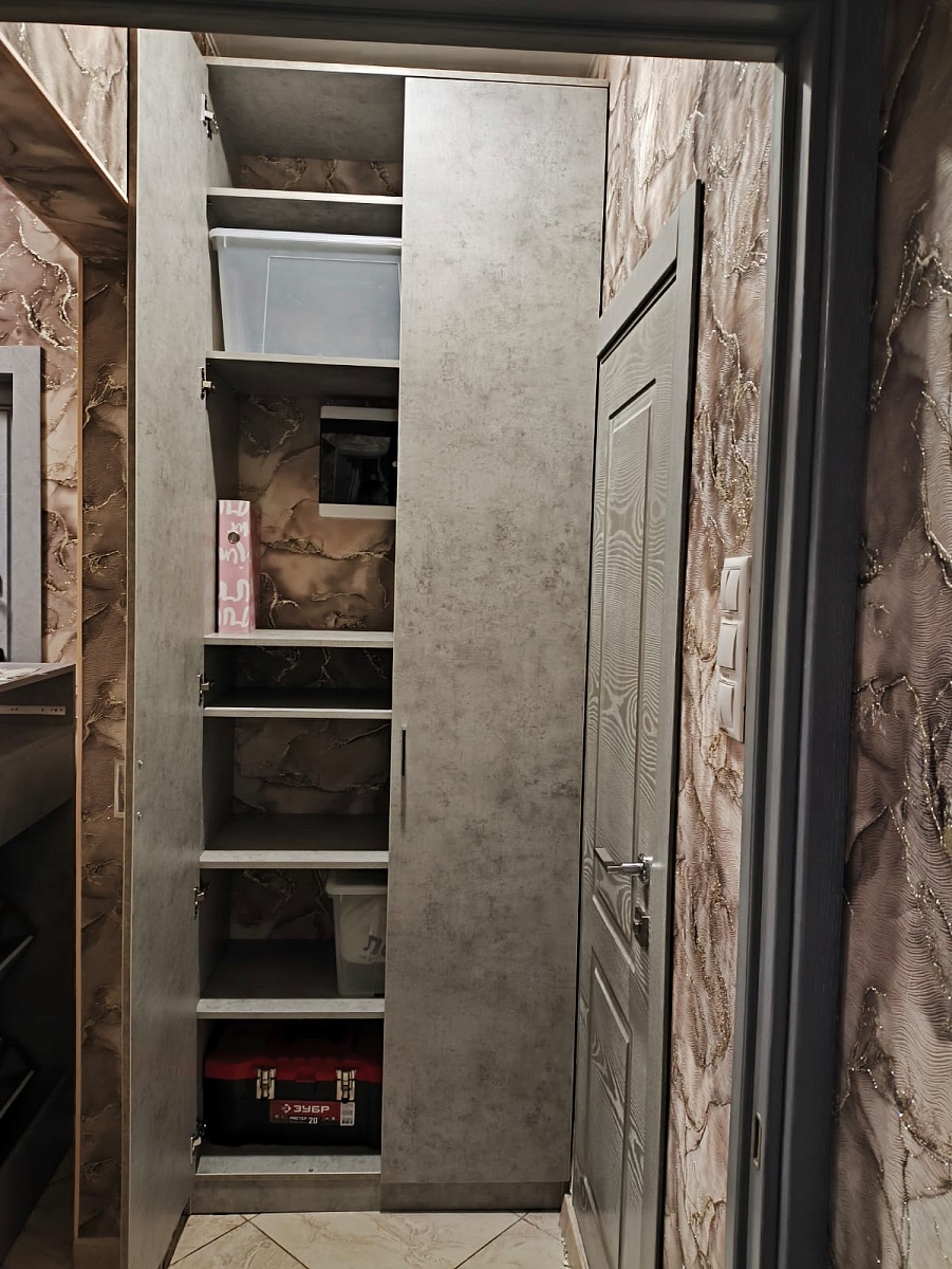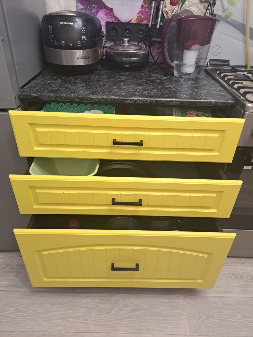 Отличный шкаф. Сделан качественно. Благодаря подобранным размерам получился очень вместительным. Изготовление и доставка заняли всего неделю. Был брак детали одного из ящиков. Лицевая стенка, к которой крепится фасад, имела кромку с нижней, не лицевой стороны (со стороны дня), а верхняя, которую видно при открытии ящика была без кромки. После обращения в поддержку, в течение двух дней привезли новую деталь.