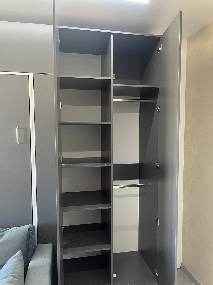 Заказ на сайте оформил легко по указанным параметрам, менеджер оперативно связался и подтвердил размеры. Доставка бесплатная до парадной, подъем на этаж осуществляется за дополнительную плату. Заказ прибыл хорошо упакованный, ничего не повредилось. Собрал все сам; в комплекте была инструкция и необходимая фурнитура. В целом, процесс оказался простым и занял один день. В распашном шкафу Заказ 00000195837, изделие ЭСКИЗ №00000195837 Шкаф распашной Остин Нео 17 BMS (1180х2500х565) хотелось бы побольше высоты для курток и пальто, иначе они не влезают. Также в инструкции не было сказано, что есть накладные и полунакладные петли, дверцы первоначально собрали с щелями, пришлось снимать и перевешивать все заново. В целом, доволен покупкой: шкаф соответствует моим размерам ниши и имеет доступную цену. В целом я оцениваю магазин BestMebel на 5 баллов — от оформления заказа на сайте до конечного результата сборки стеллажей и распашного шкафа. Товары соответствуют описанию, качество оправдывает цену, я доволен. Спасибо!