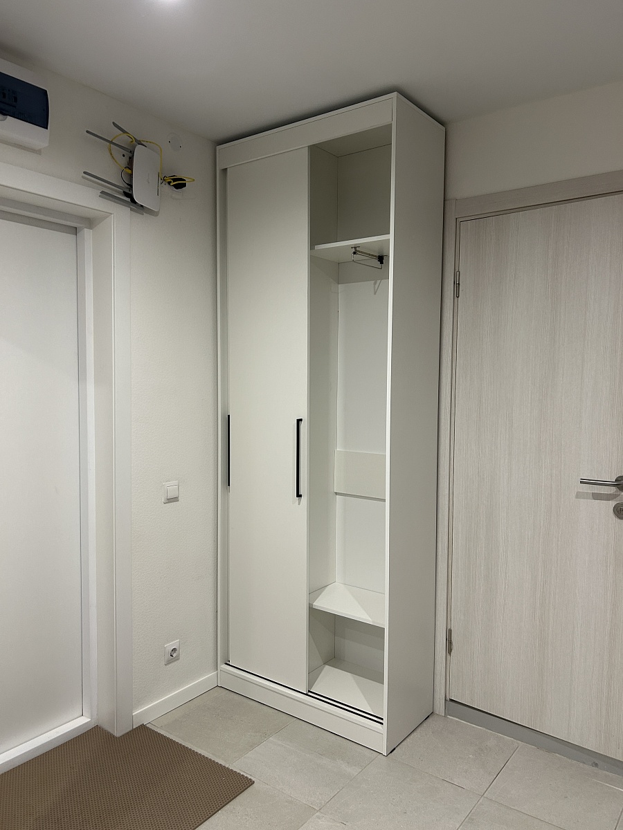 Искали минималистичный и бюджетный шкаф в прихожую, а данная модель подошла идеально. Заказала по своим габаритам и немного дополнила наполнение. Приятно удивила скорость изготовления. Практически через 4 дня с момента заказа сообщили о готовности шкафа. Очень оперативно 👍🏻 супер