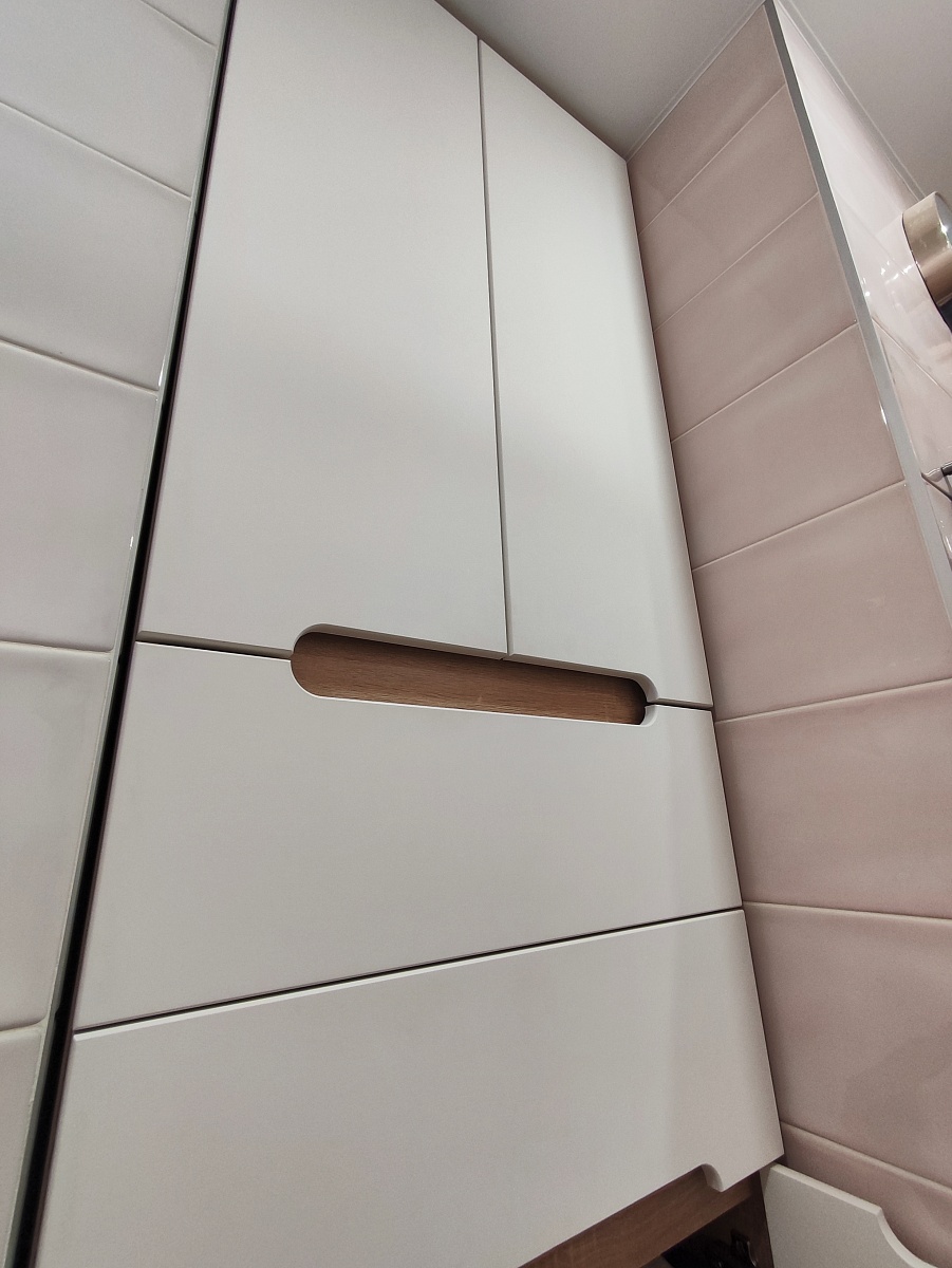Заказ 836381. Шкаф полностью соответствует моим ожиданиям. Быстро помогли сделать по моим размерам. Согласовали эскиз. Доставка через 3 дня. Собирал супруг. Сложностей не возникло. Шкаф в ванной. За 2 года ничего с ним не произошло. Всё в полном порядке.
