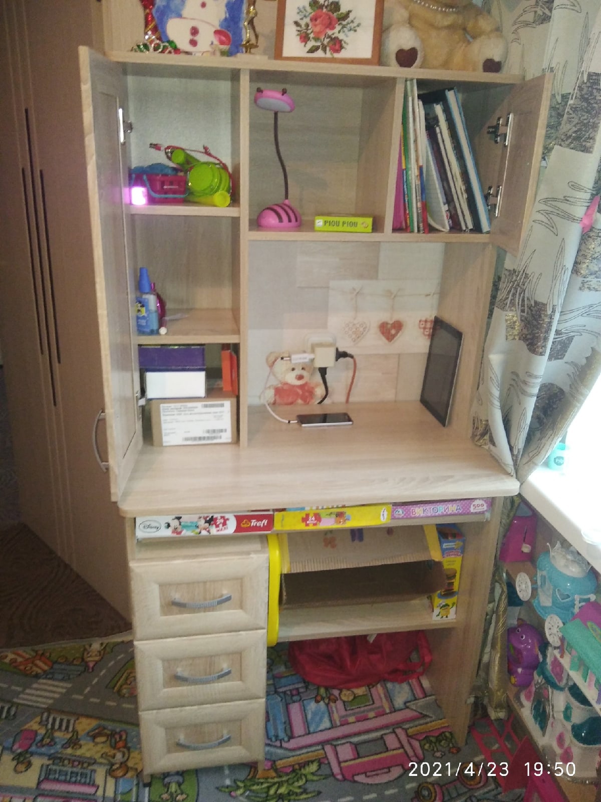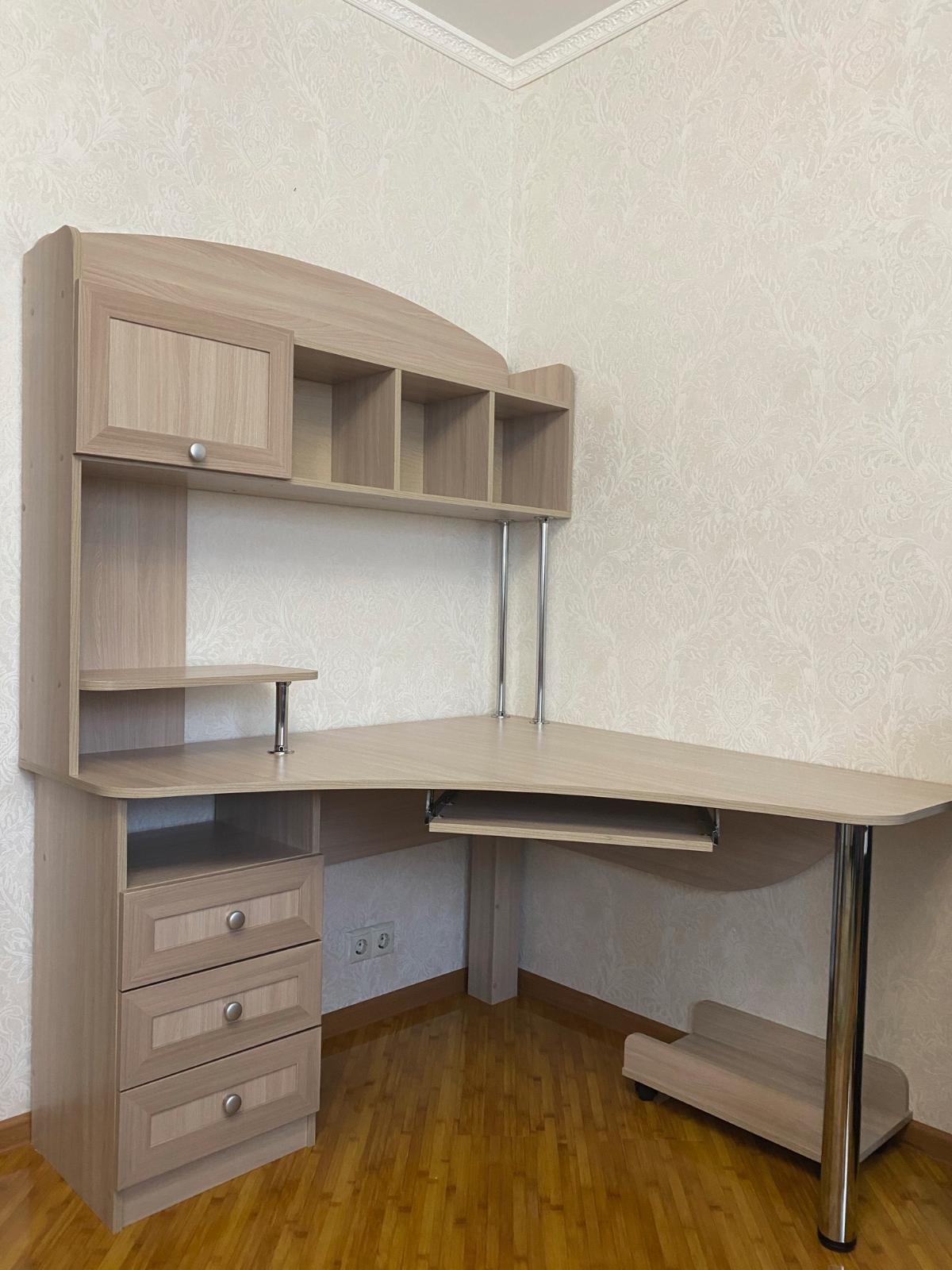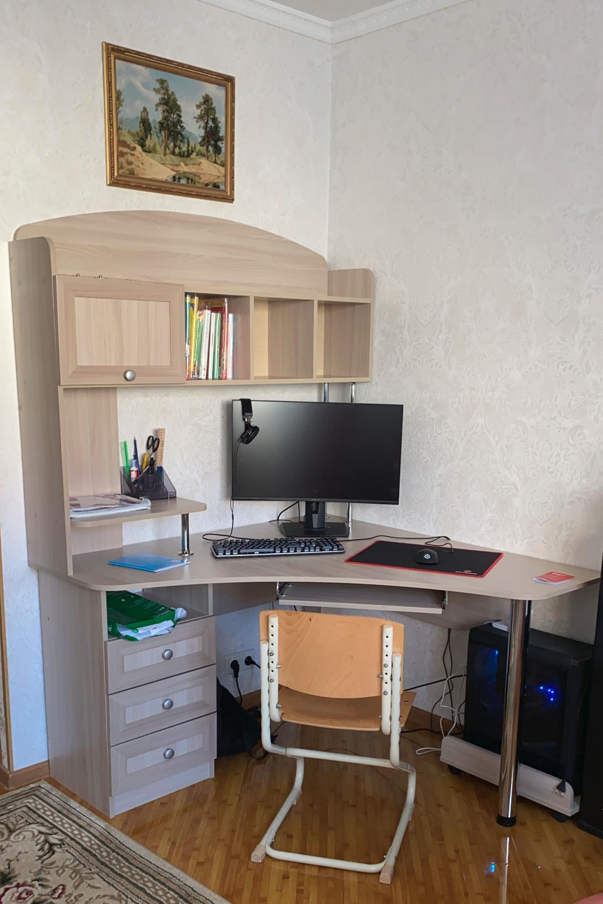 Из за отсутствия места для стола в детской комнате, было очень проблематично подобрать стол, да еще и в цвет остальной мебели. Нашла этот сайт, где можно заказать стол по своим параметрам и подобрать цвет, что я собственно и сделала, отрезали столешницу по моим размерам, можно было выбрать дополнительно желаемый цвет и фурнитуру. Сделали и привезли на 4 день, после заказа, доставка бесплатная до двери, что очень порадовало. Сборка легкая. Стол очень добротный и красивый. Заказ 00000612281, изделие Компьютерный стол Школьник (800х1520х500)