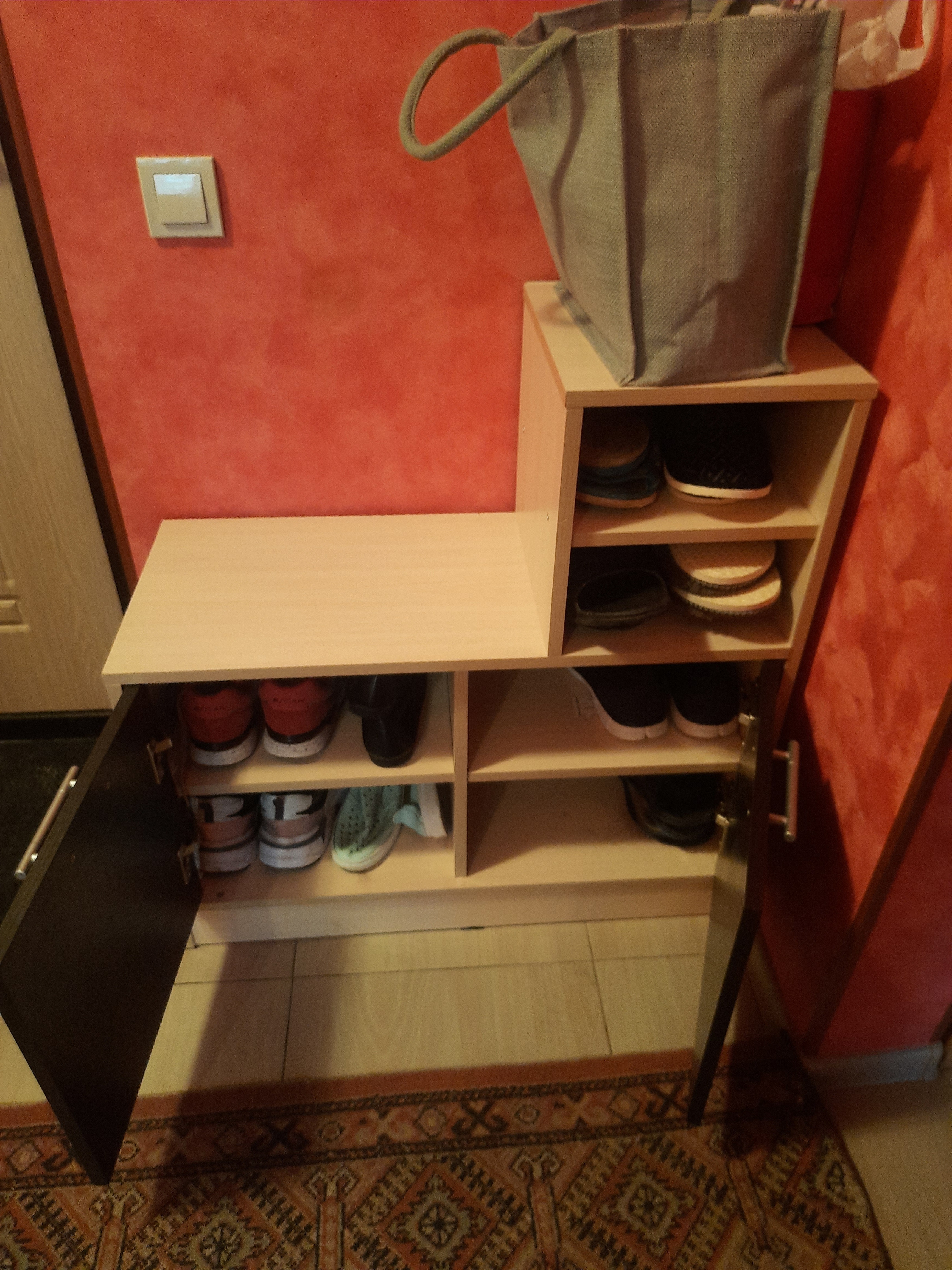 Заказала обувницу (заказ 00000543149) по своим размерам, у меня маленькая прихожая и очень трудно найти такую миниатюрную обувницу. То, что можно сделать по заказанным размерам - очень большой плюс. Все сделали четко, по выбранному мной дизайну, привезли в оговоренный день. Собрала сама, все хорошо подошло. Полгода пользуюсь, все хорошо. Удобно, надёжно, радует глаз. Спасибо.