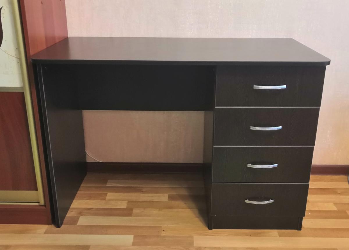 Заказывали письменный стол для ребёнка, размеры не стандартные, вписался отлично. Цвет Венге цава - выглядит почти чёрным. К качеству претензий нет - все сделано добротно. С доставкой так же проблем не было, все  в срок. Сборку не заказывали, муж собрал сам за вечер.Очень понравилось то, что можно выбрать самостоятельно необходимые размеры, фурнитуру и даже толщину кромки, а также расположение ящиков.