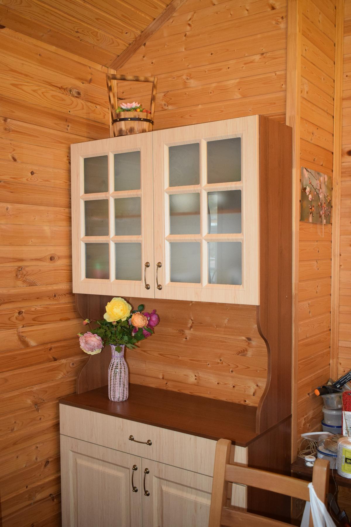 Покупали  буфет Романс по индивидуальным размерам в составе сборного гарнитура для небольшой кухни на даче. Заказали  в цвете Орех Экко, с фасадами Береза 1901. В сборный гарнитур также вошли: Шкаф нижний Гарда угловой 850 BMS, Шкаф нижний Гарда мойка 1 дверь BMS, шкаф нижний торцевой радиусный Ирен BMS, Шкаф верхний высокий Гарда горизонтальный стекло BMS. Буфет оказался очень милым, с боковыми стенками с красивыми изгибами. При том, что мы его заказывали минимальной глубины,  (нижняя часть буфета всего 40 см), в него поместилось вся посуда. Мы очень довольны приобретением!