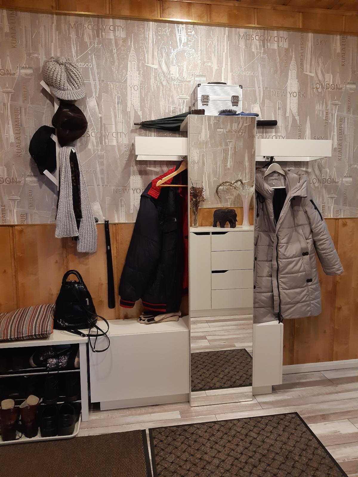 Оригинальный дизайн, искала что-то необычное и небольших габаритов. Собирали сами. Все намеченные отверстия на своем месте, собирается быстро. Очень удачно вписалась в интерьер прихожей.