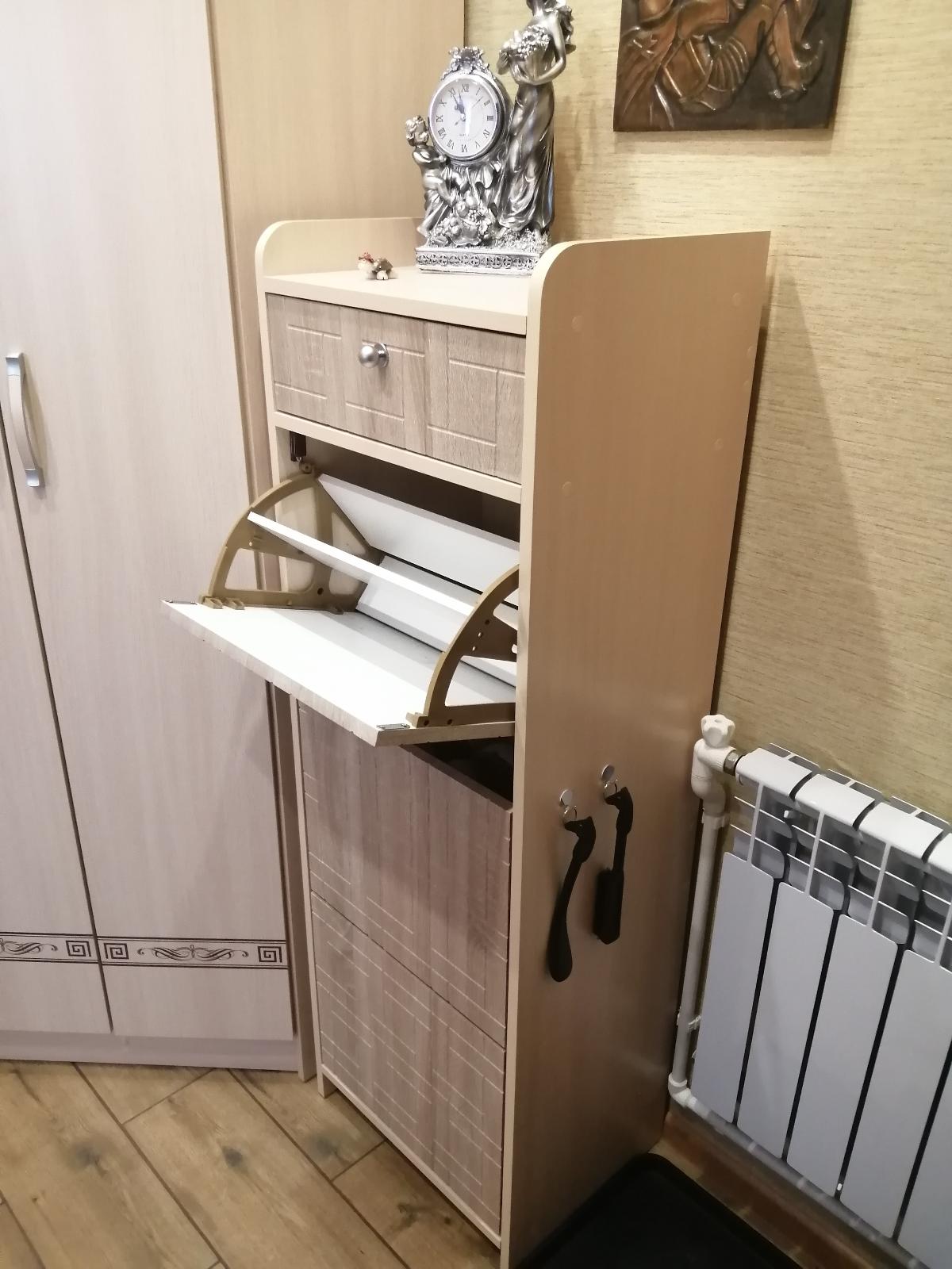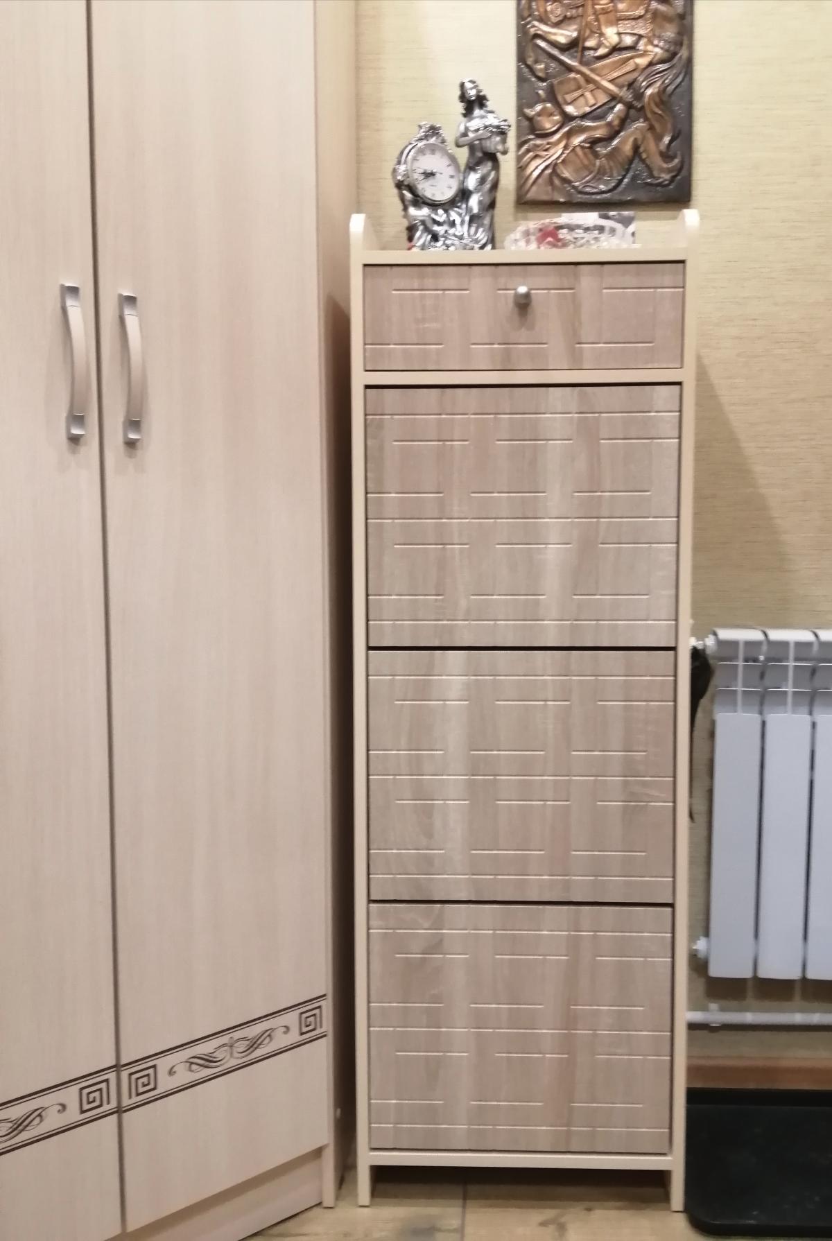 При неимении достаточного места в прихожей, искали обувницу нужного размера, чтобы она (обувница) хорошо вписалась в интерьер прихожей. Свой выбор остановили на обувнице Аля 3 BMS (450*1360*350)  ООО "Бэст-Мебель" Размерная линейка удовлетворит каждого покупателя этого товара. Конфигурацию фасада можно изменить на своё усмотрение. Широкая палитра цветов-несомненно большой плюс. Отдельное спасибо работникам "Бэст-Мебель": всё красиво, качественно,достойно! Быстрая доставка, не сложная сборка (сборку производили сами ,без привлечения работников "Бэст-Мебель"). И вот обувница Аля 3 BMS заняла достойное место, украсив интерьер прихожей. Спасибо всем работникам ООО "Бэст-Мебель" за качественный товар!