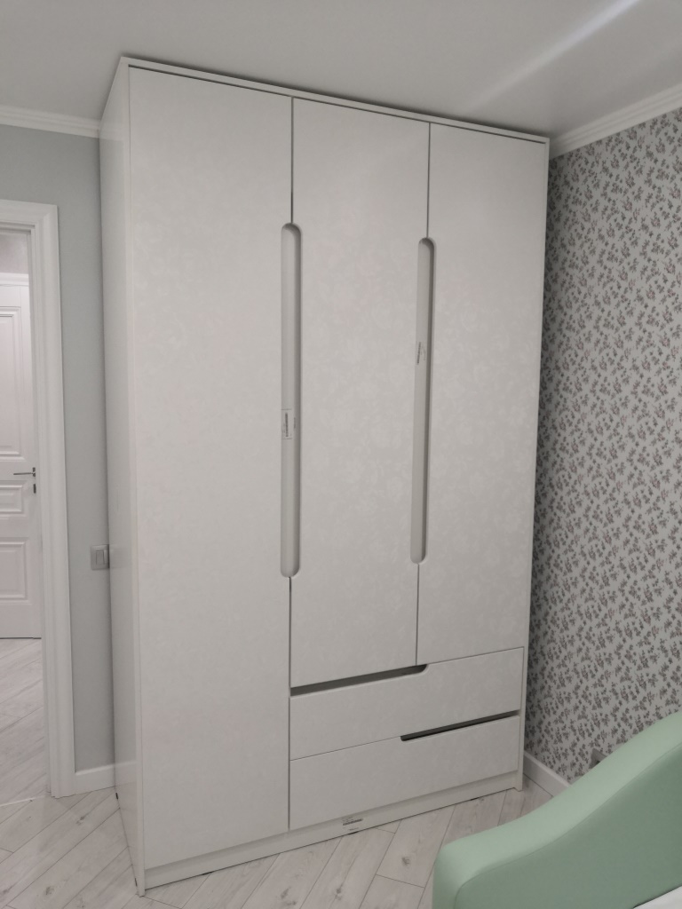 Отличный стильный и красивый шкаф в детскую для девочки! ВСем гостям очень нравится красивое исполнение цветочков!Очень довольна ценой, исполнением, быстрым изготовлением, бесплатной доставкой. Сроки не затягивают, консультация отличная (спасибо Огромное менеджеру Марии, очень хороший специалист!!!)Всего Делала 3 заказа и в итоге было 7 изделий. Претензий вообще нет. Собирали шкаф самостоятельно, все понятно. Если эскиз для сборки напечатан мелко, то можно попросить, чтобы присылали на почту эскиз, очень удобно! Совет для заказывающих - лучше переплатите и закажите "кромку 2 мм для всех видимых деталей" - не пожалеете качеством! РЕКОМЕНДУЮ!
