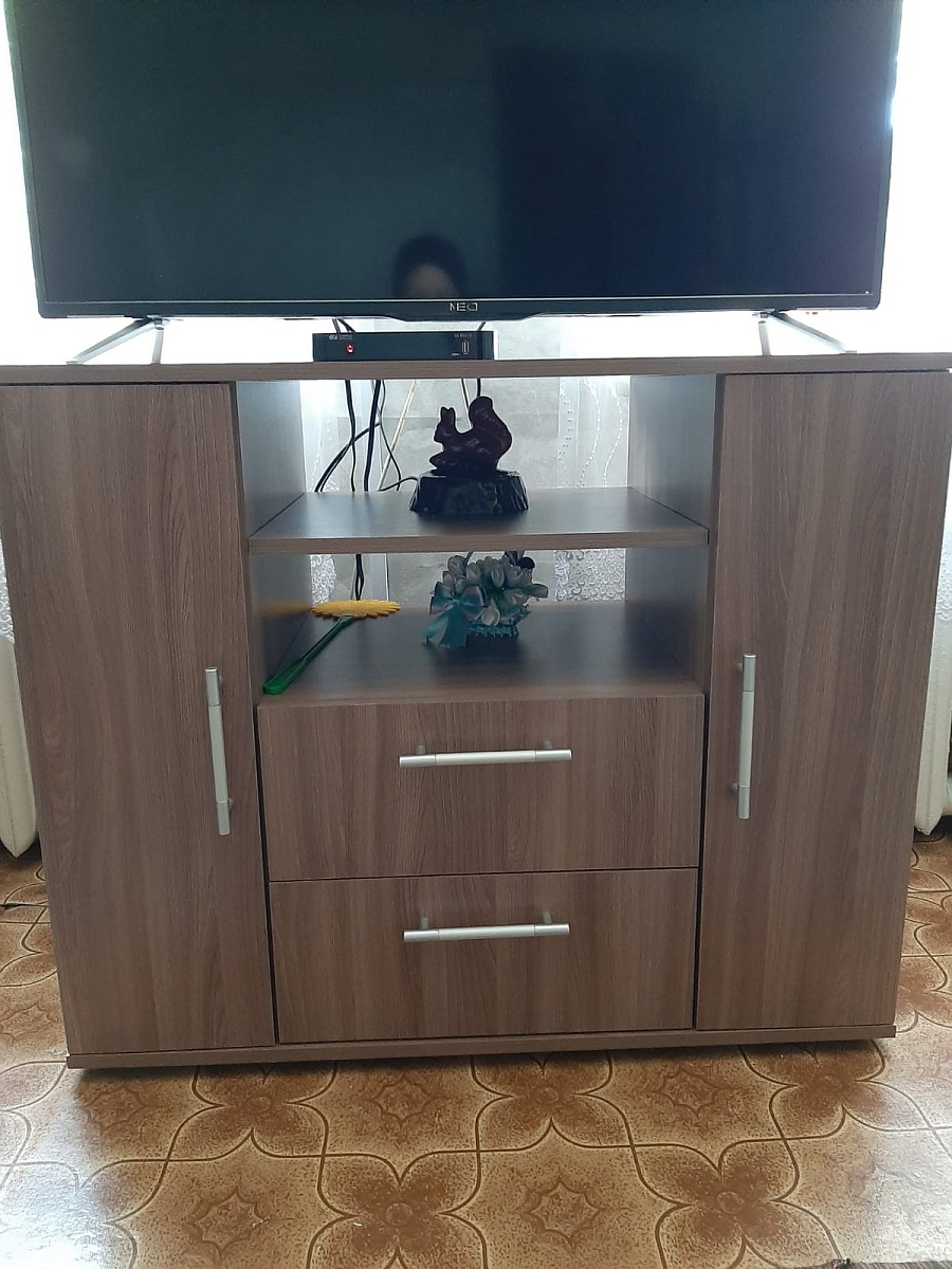 Искала тумбу под телевизор именно высокую. Только здесь нашла то, что надо: Тумба Мишель 2102 BMS, цвет Ясень Шимо Темный, с индивидуальными размерами (900х750х450). Привезли во время, со сборкой проблем не было, качество устраивает.Заказ 00000990609