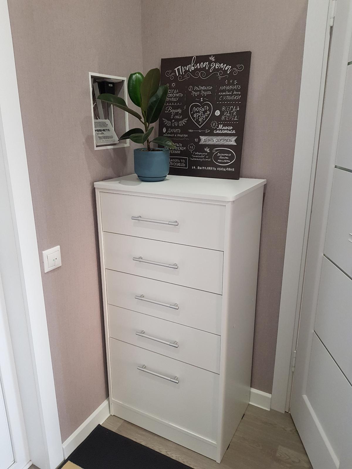 Заказывали комод и другую мебель для обустройства маленькой комнаты (всего 8 кв. метров). С выбором магазина определились сразу же, так как до этого уже у них не раз заказывали мебель. Большим плюсом стало то, что можно выбрать понравившийся дизайн и уже потом подогнать размеры и цвет под необходимые.  Оформить заказ оказалось не сложно, конфигуратор помог подобрать фурнитуру (ручки, цвет фасада). После отправки формы заказа на сайте, мне быстро перезвонили из самого магазина и уточнили правильность заказа. Доставили комод быстро в удобное для меня время. Комод не смотря на внешнюю компактность - оказался очень вместительный. Фасад интересный по фактуре - прекрасно гармонирует с остальной мебелью, создавая ощущение простого, но красивого полноценного гарнитура.(Заказ 00000373974 от 14.03.2020 Комод 4 ящика 2.06 Лотос BMS)