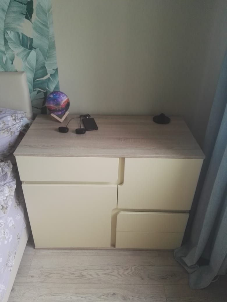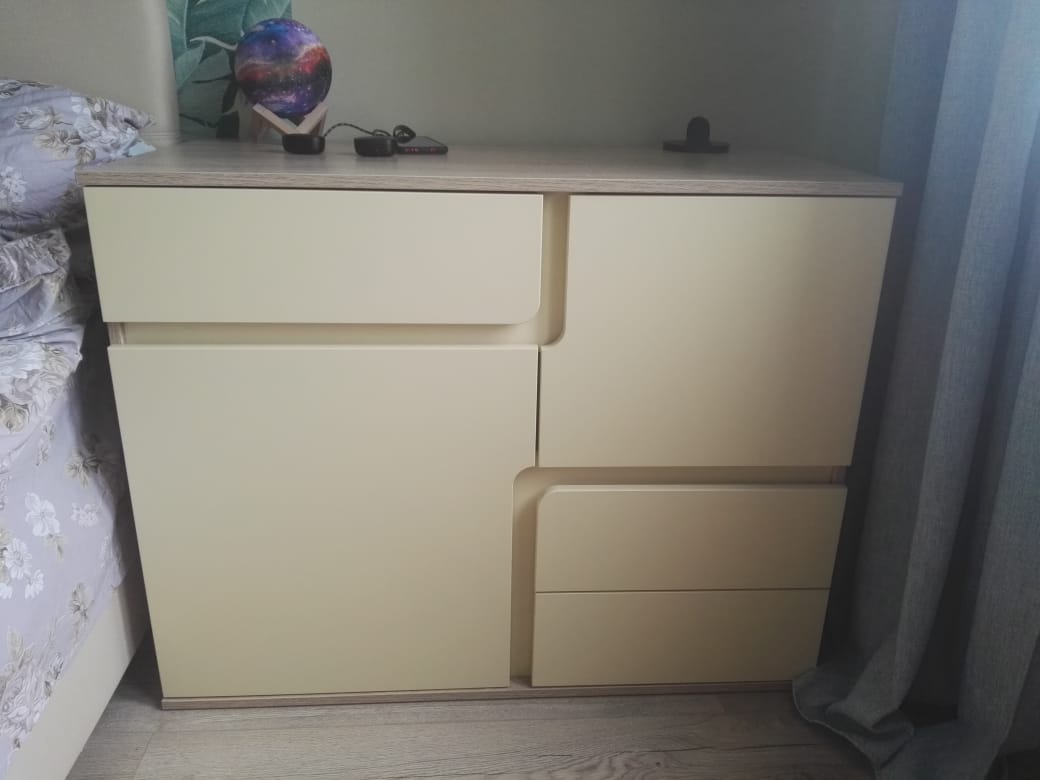 Покупаю не первый раз. Очень удобный сайт. Разнообразие моделей и размеров. Быстрая доставка ко времени, грузчики русские, могут собрать, а можно и самим, инструкция понятная прилагается. Все привезли во время и в полной комплектации, даже фурнитуры немного осталось. Комод очень удобный. Есть большие ящики и маленькие под разные нужды. Ножки мы не стали прикручивать.