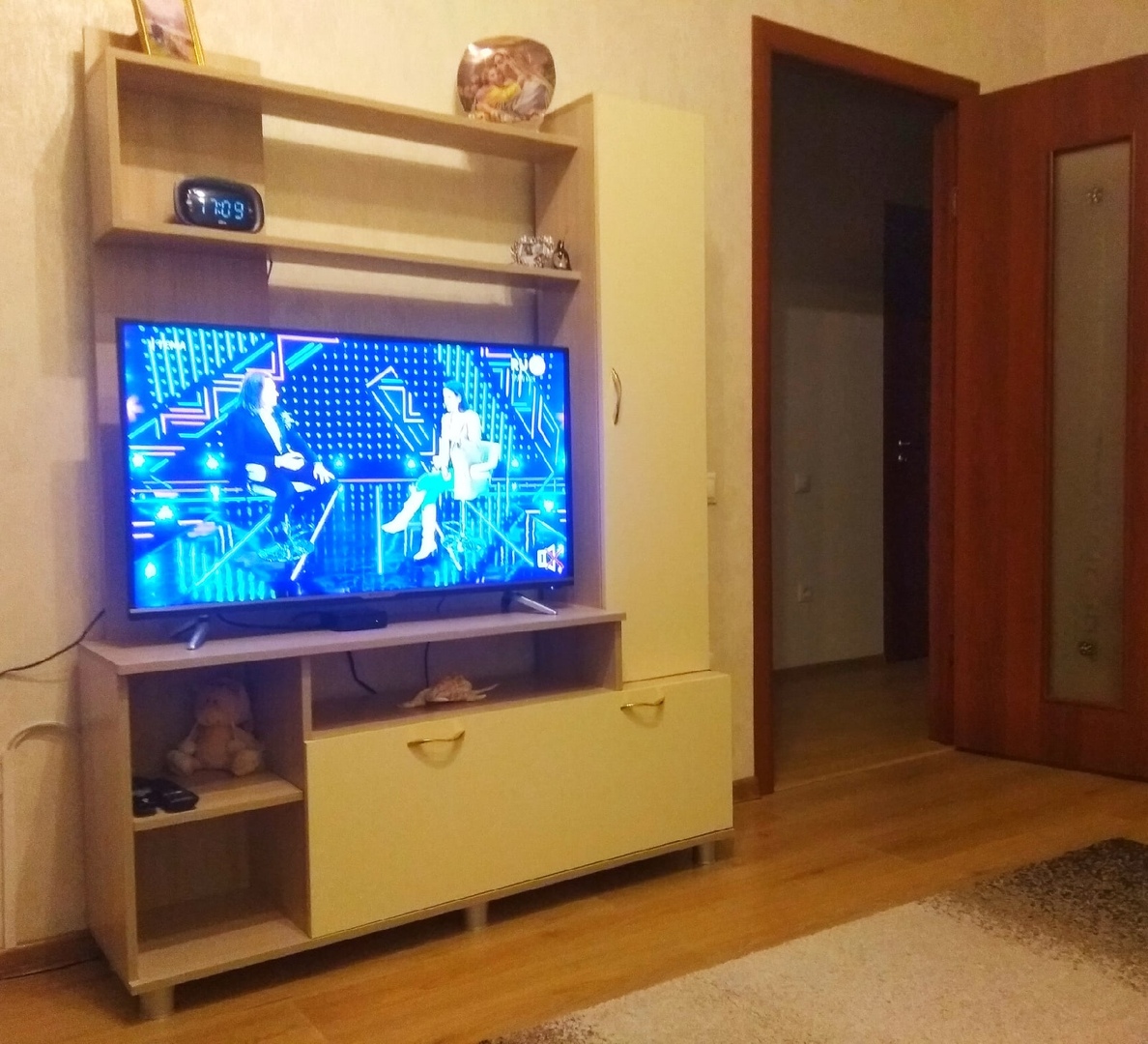 Доставили довольно быстро, сборщики хорошие. Правда на фабрике перепутали размер стеклянных вставок, но быстро их довезли за несколько дней. Стенка очень вместительная, смотрится хорошо.