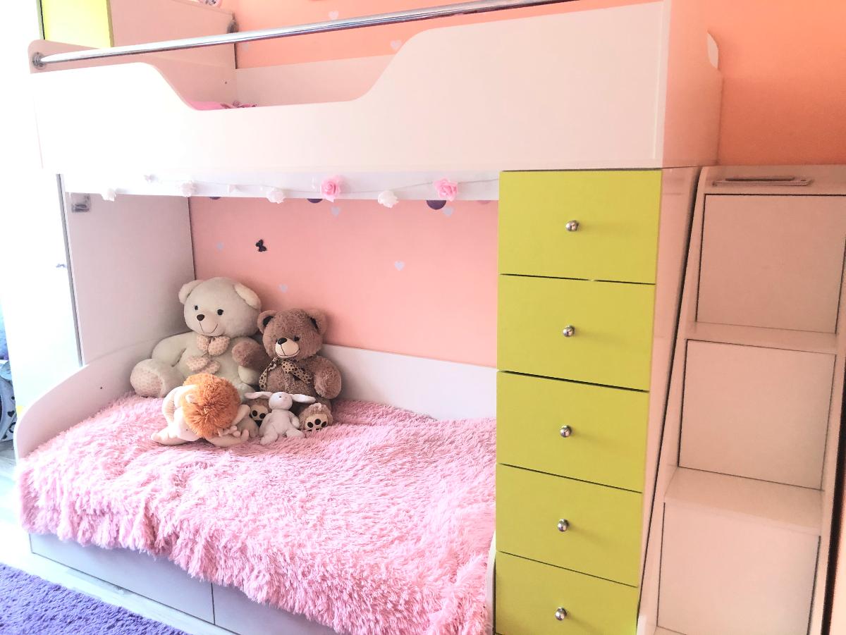 Заказ 00000356343Купили 2-хъярусную кровать для наших девчонок. Качеством очень довольны!!С учетом того, что белое ДСП всегда в сколах, здесь их почти не было. Цвета насыщенные, красивые. Очень понравилось, что bestmebel сделали кроватку именно по нашим размерам, индивидуально, и доплату не взяли за эту услугу. И, конечно, работа компании очень радует, здесь работаю действительно профессионалы! Все четко по срокам, отдельное спасибо доставке. Ребята привезли, занесли в комнату. Все было очень хорошо упаковано и понятно для сборки. Муж с дедушкой смогли сами собрать нашу кроватку-мечты. Второй этаж хорошо укреплён и безопасен для сна, выпасть невозможно. Я иногда сплю вместе с дочкой на втором этаже. Конструкция просто волшебная, очень много ящиков и шкаф. У нас влезли все Игрушки и почти вся Одежда. Немного острые грани у лестницы, но дети привыкли, им не мешает. Мы очень рады, что нашли на просторах интернета эту компанию и такую прекрасную кроватку!! Будем заказывать ещё мебель!