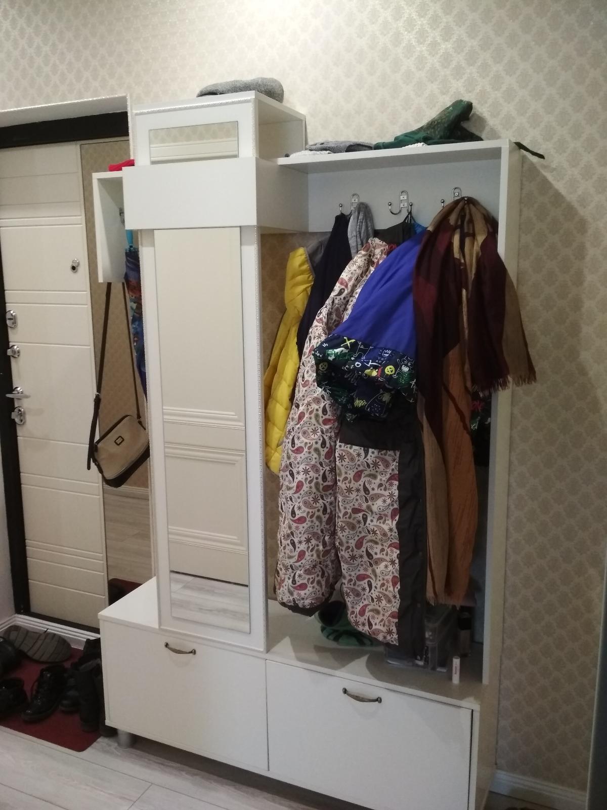 Красивая прихожая, заказывали белый гладкий цвет. Хорошо вписалась в интерьер, необычная. Рекомендую, друзья очень понравилась, решили себе тоже заказать.