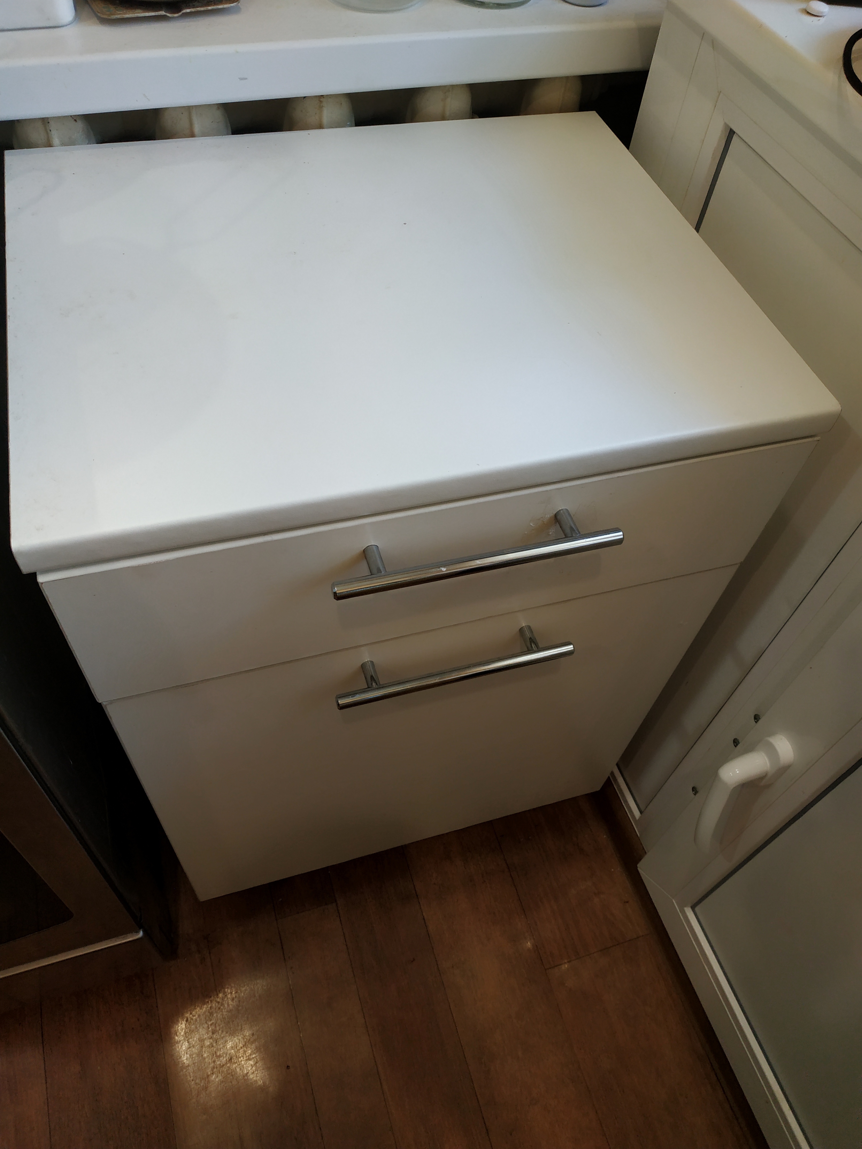 Заказывала комод Бемби Т-3 BMS для кухни, нужна была именно подобная конструкция для оптимального использования пространства - внутри большой отсек для кухонной техники, вверху полка "для мелочей",  внизу ящик. По факту во внутреннем отсеке есть еще полка (у меня она не установлена).Габариты комода и цвет выбрала сама, добавила кромки и доводчик для дверцы. При увеличении высоты, если не ошибаюсь, увеличивается только средний отсек с дверцей, высота верхней полки и ящика остаются неизменны (19 - 20 см). Изготовили и доставили быстро. Собирали самостоятельно - очень легко - на комплектующих были наклейки с номерами и названиями деталей.