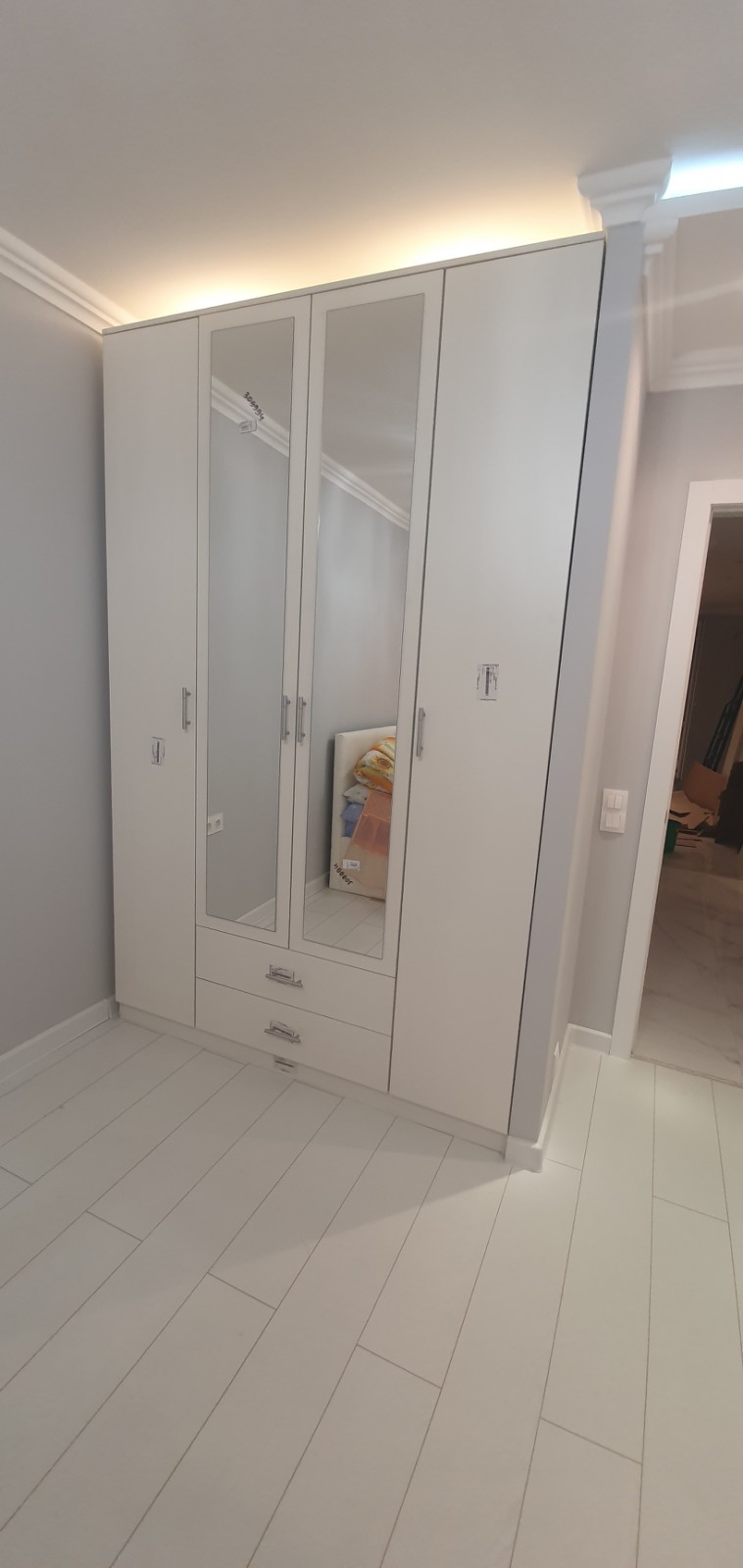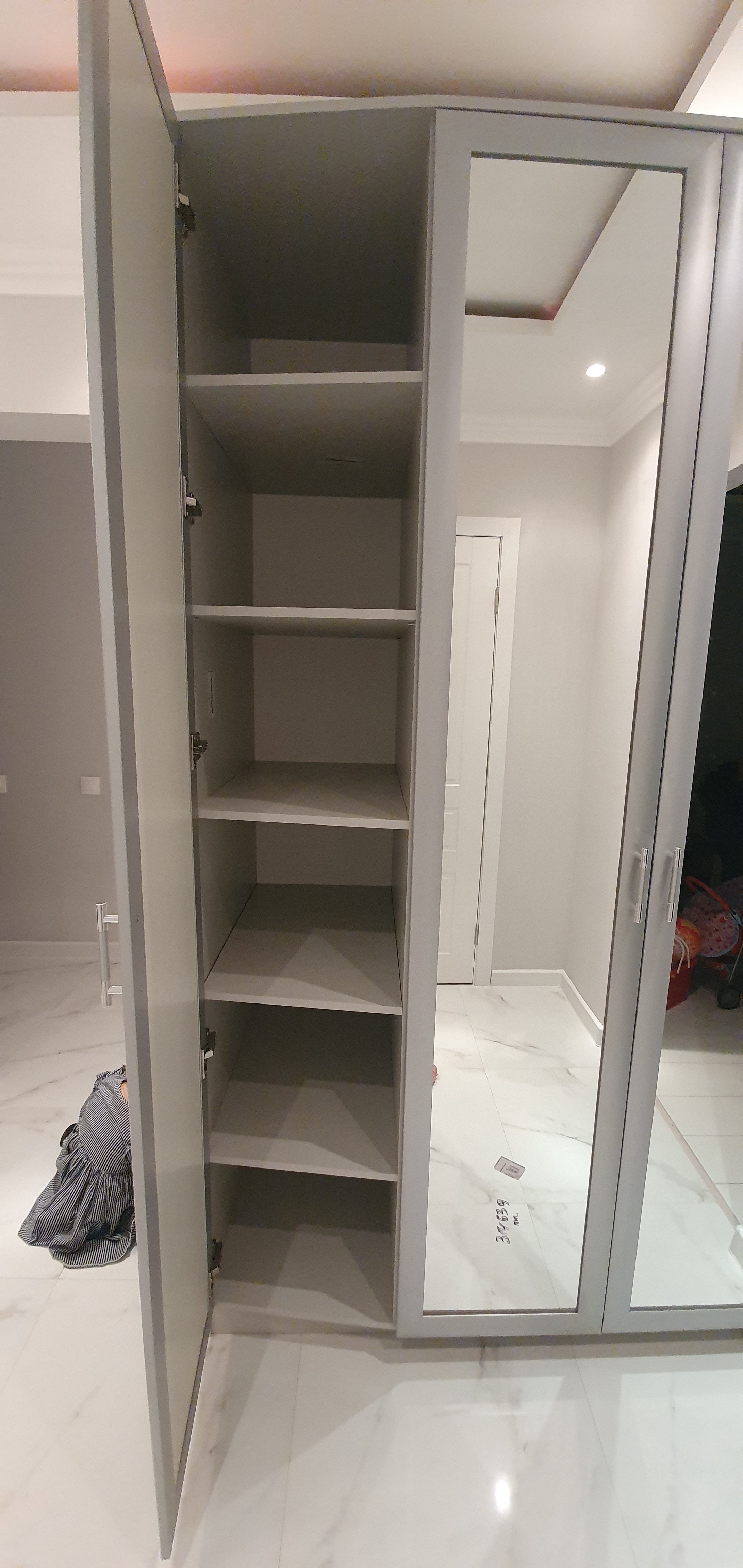 Заказывала данный шкаф для установки в нишу, по своим размерам. Все шикарно подошло в мою светлую квартиру! Установщики очень профессиональные, в этот день собрали мне 3 шкафа, большое спасибо за качественную и красивую мебель!