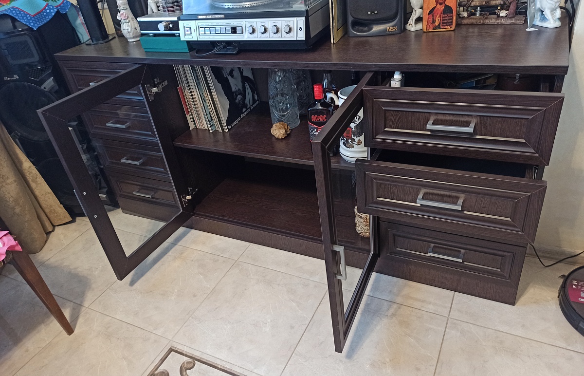 Заказ 00000951829, изделие ЭСКИЗ Кухня Европа В-5 BMS (2000х2170х600).Отличная кухня , в использовании 4 месяца , заказали, потому что у друзей такая же уже 1,5 года и тоже все прекрасно! Нареканий не обнаружено , все в порядке , механизмы не заедают , столешница отличного качества, в дополнении заказали столик.